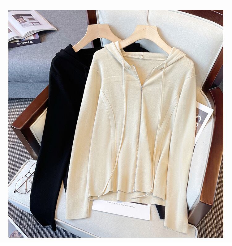 大きいサイズの婦人服 2022 トレンディな女性の秋の新しいファット シスター ルーズ ニット デザイン ルーズ フード付き セーター コート 大きめサイズ オータム 秋物 888419077645064