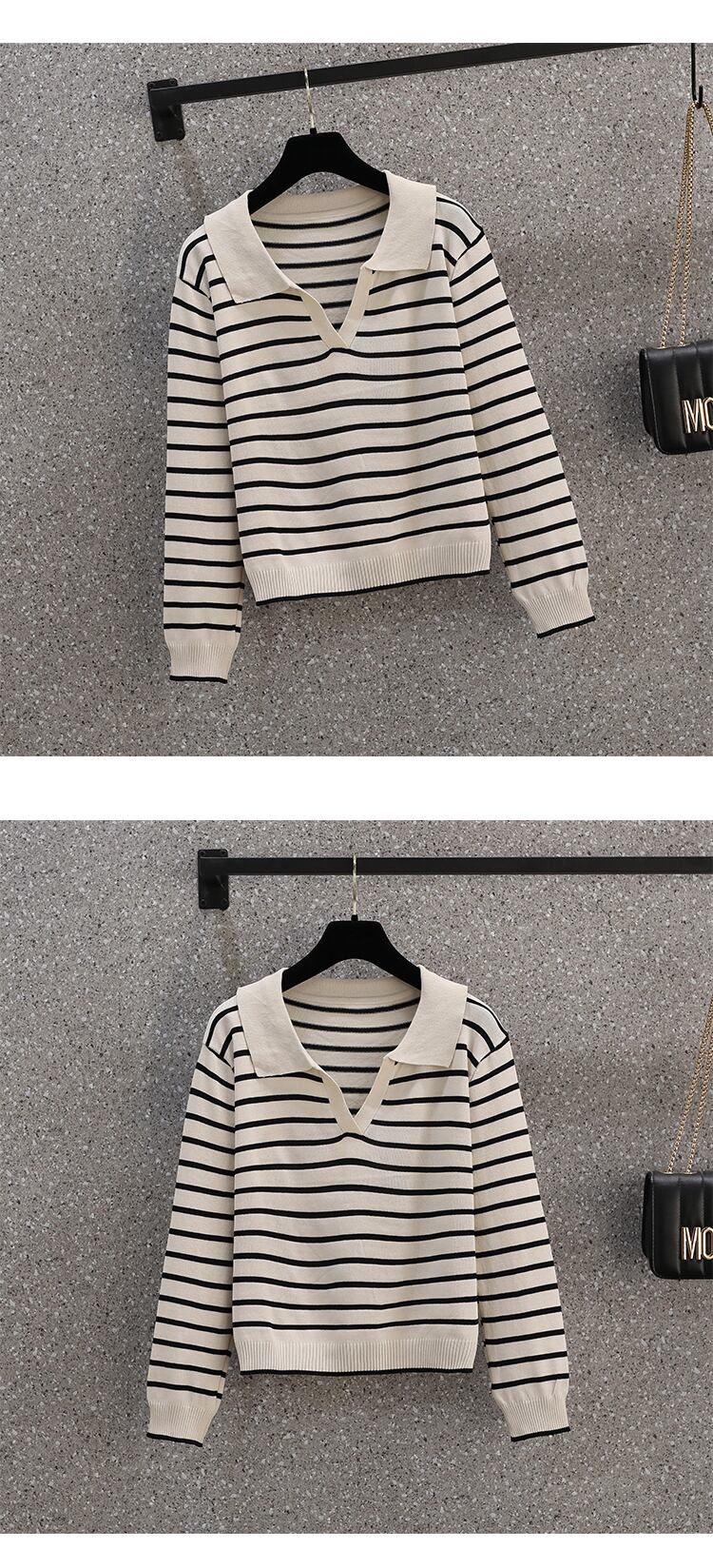 大きいサイズの婦人服 2022 ファットシスター秋の新しいフレンチニッチオールマッチ薄手で年齢を減らすニット底入れシャツトップ 大きめサイズ オータム 秋物 8884130263021052