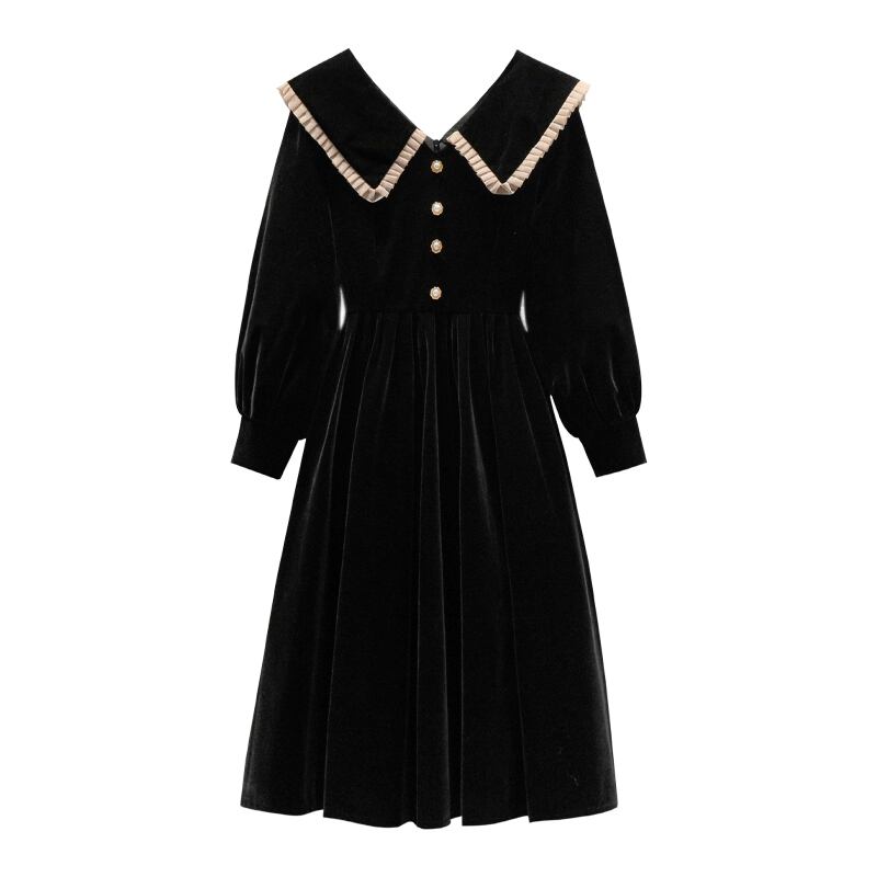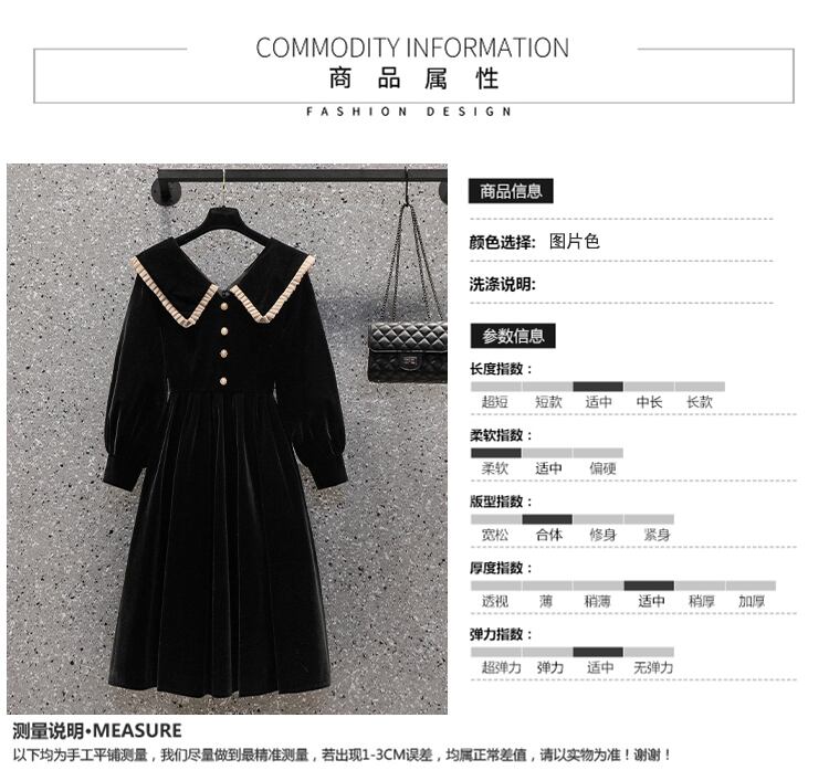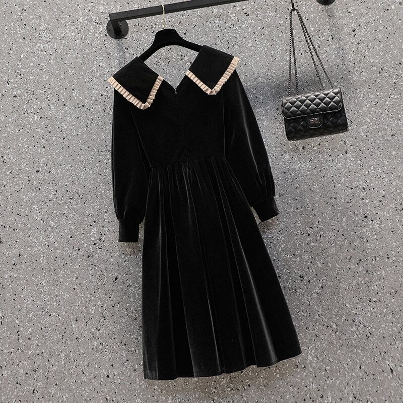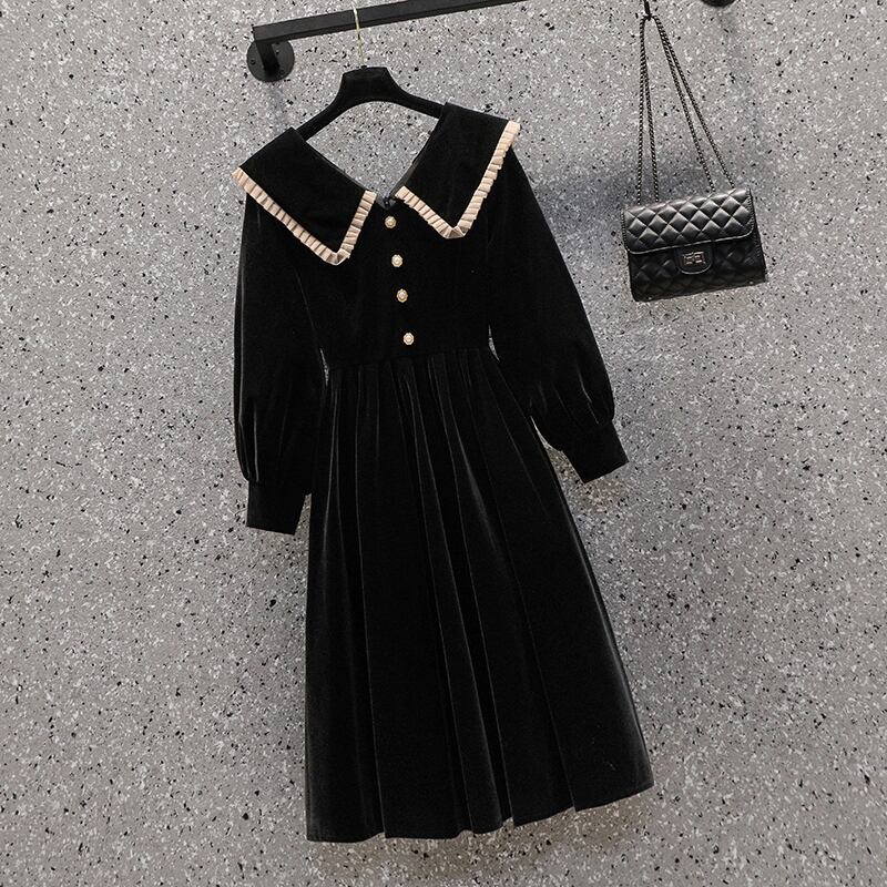 大サイズの婦人服 2022 ファットシスター秋の新しいヘップバーンスタイルの人形の襟ビッグラペルウエストスリムドレス 大きめサイズ オータム 秋物 8884110741575592