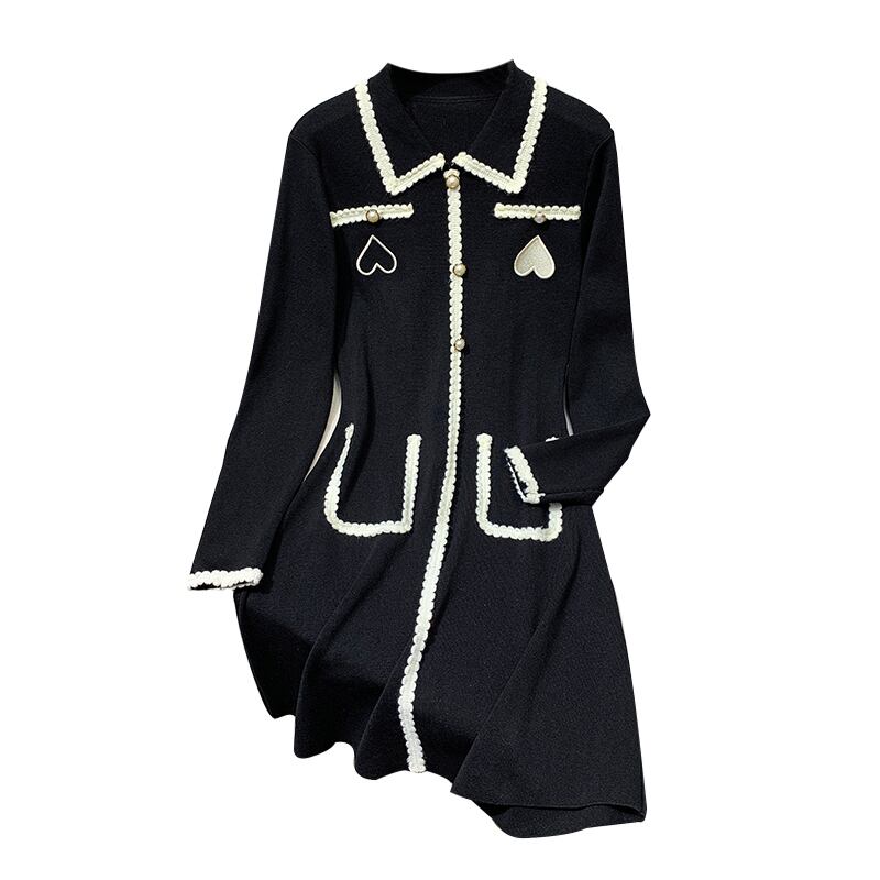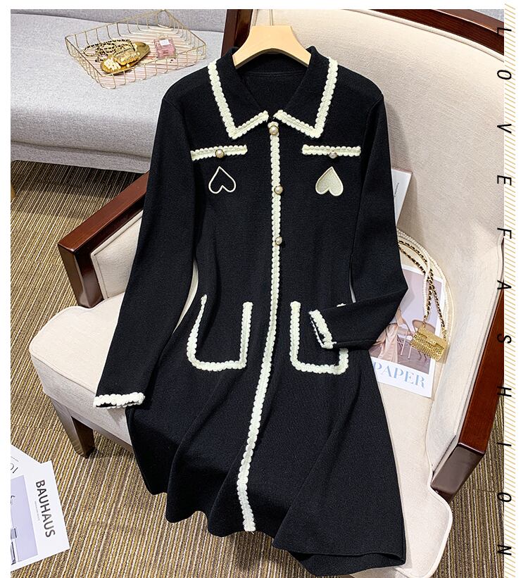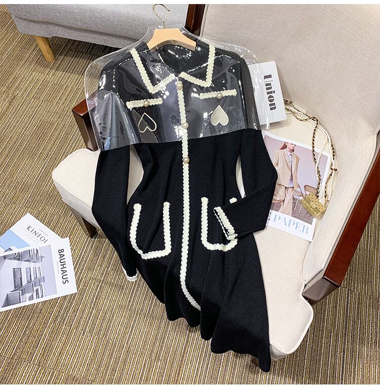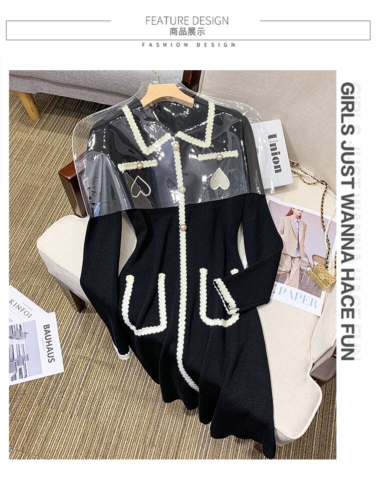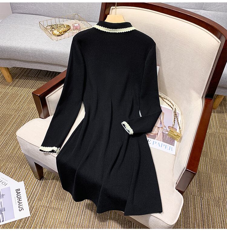 大きいサイズの婦人服 2022 秋の新しいファットシスターデザインの減齢と痩身のヘップバーンスタイルのニットドレス 大きめサイズ オータム 秋物 8884196915161291