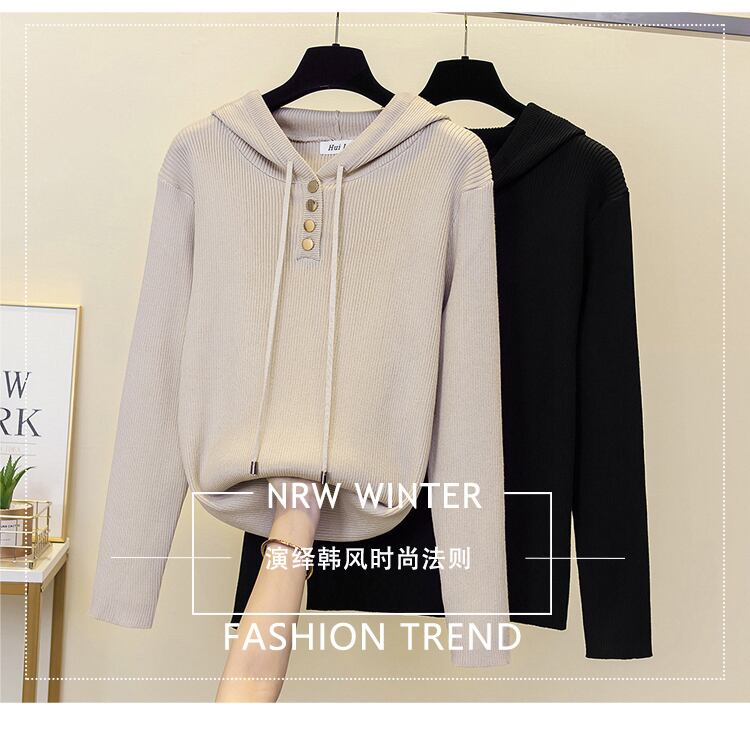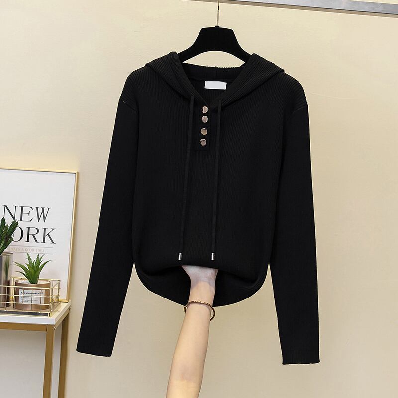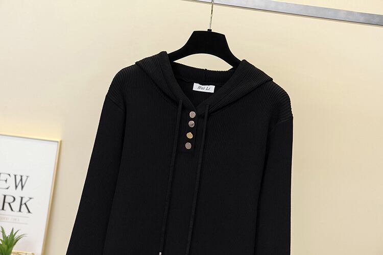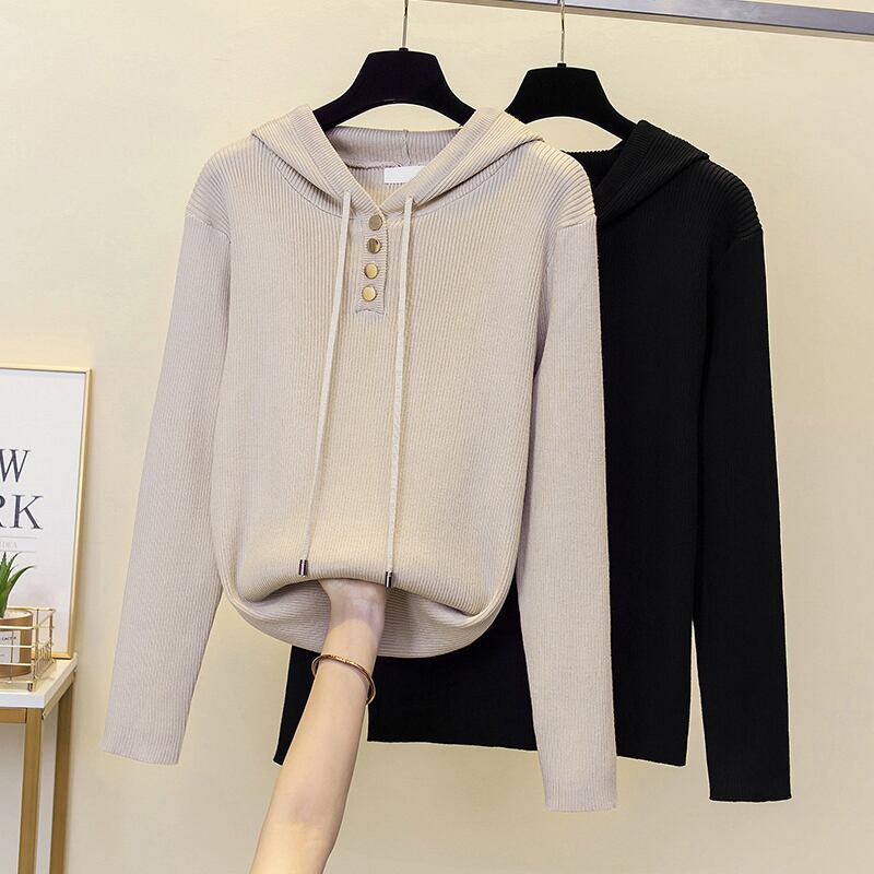 大きいサイズの婦人服 2022 秋の新しい太った姉妹オールマッチ年齢を減らすと薄い無地のフード付きのカジュアルなニットのセーターの女性 大きめサイズ オータム 秋物 ソリッドカラー 8884114312362599