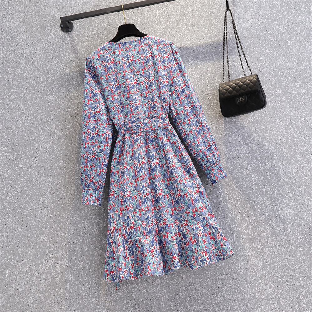 大きいサイズの婦人服2022ファットシスター秋の新しいレトロフレンチレースアップショートスカート花柄の甘くて薄いドレス 大きめサイズ 大人ガーリー スウィート キュート カジュアル オータム 秋物 8884130392179519