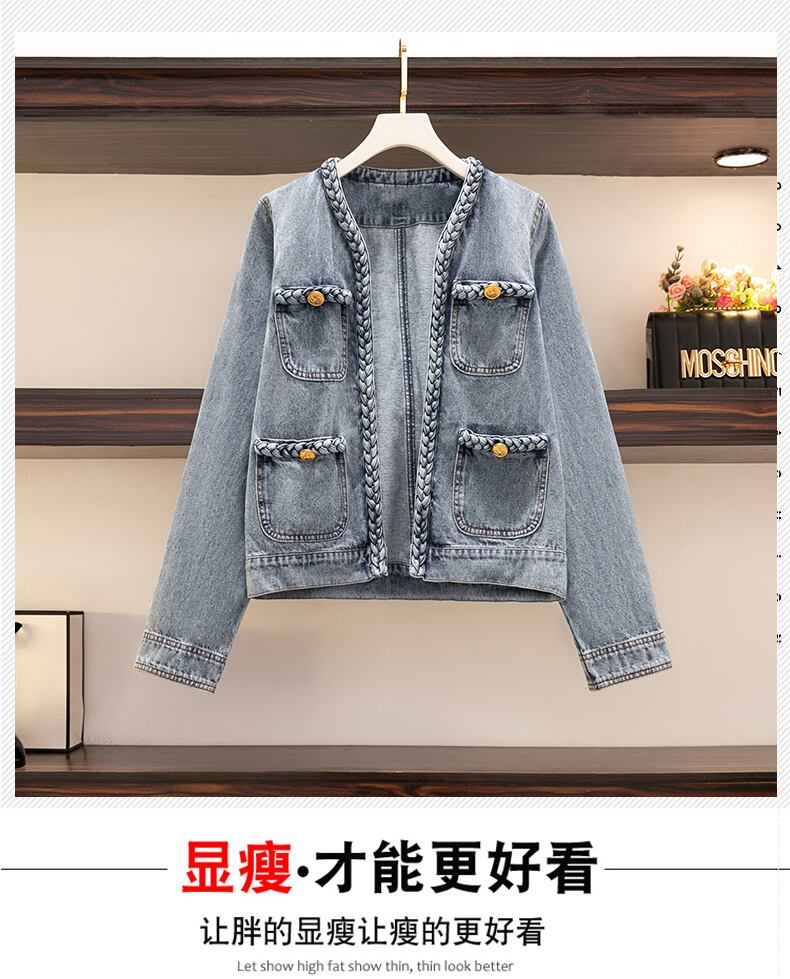 大サイズの婦人服 2022 秋の新ファットシスター緩いファッション気質肉カバーカーディガンカジュアルデニムジャケット女性 大きめサイズ オータム 秋物 8884140175956208