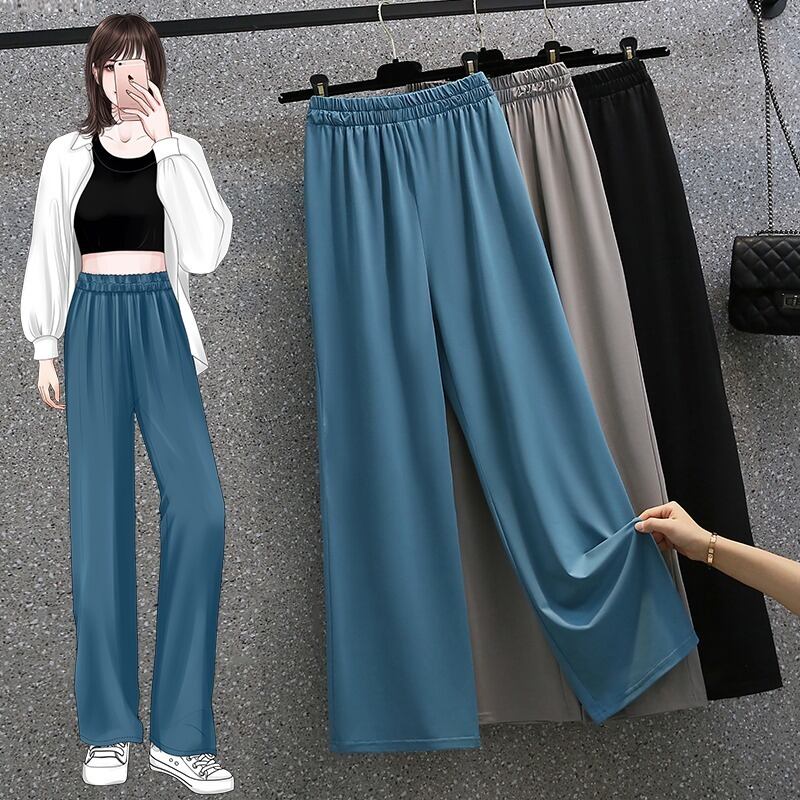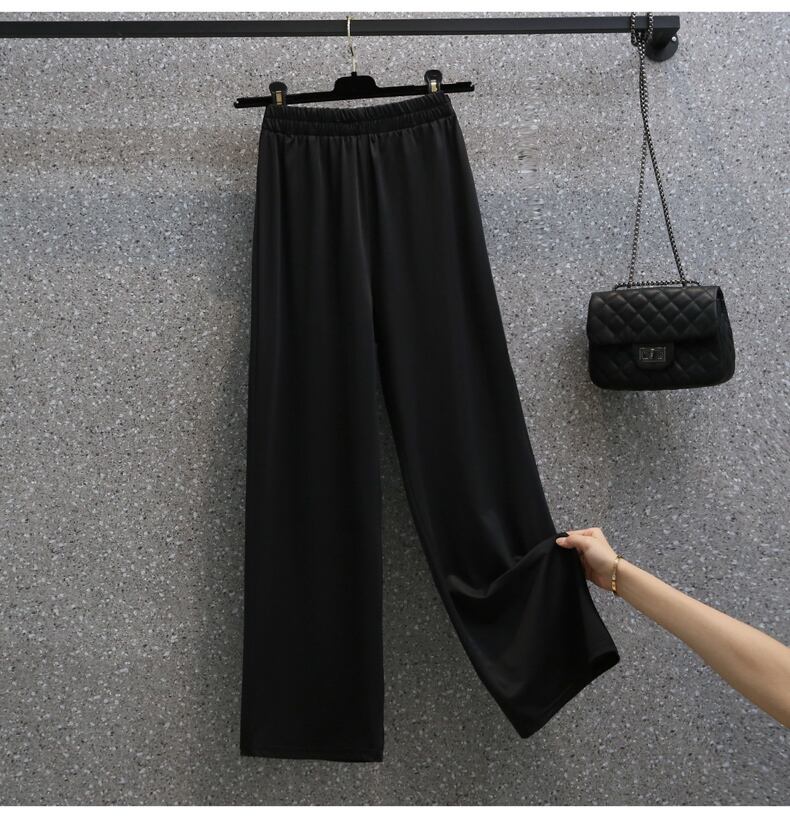 大きいサイズの婦人服2022トレンディな女性の夏の新しいファットシスターストレートチューブ縦ストレッチ弾性ワイドレッグ薄いオールマッチカジュアルパンツ女性 エラスティック 伸縮 大きめサイズ サマー 夏物 ワイドパンツ 8884179350393398