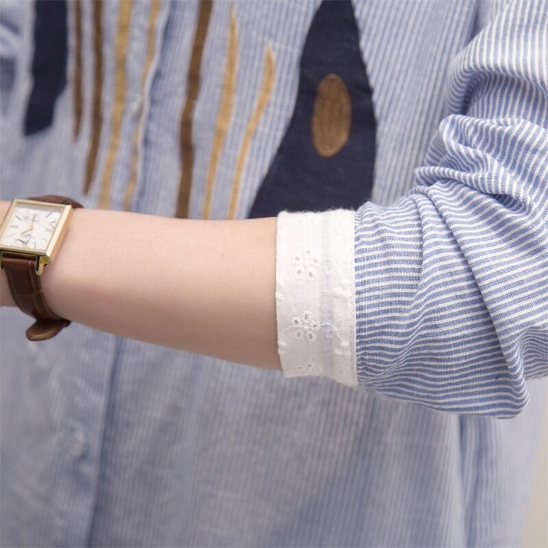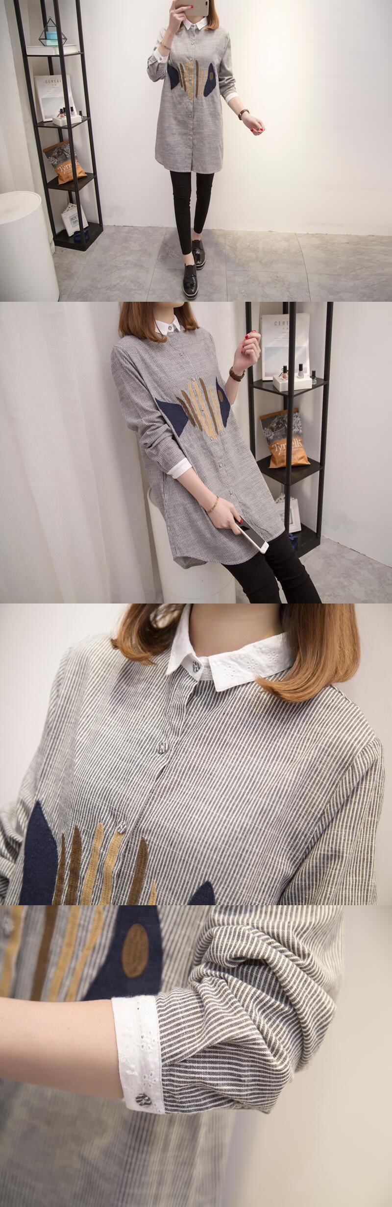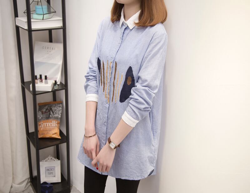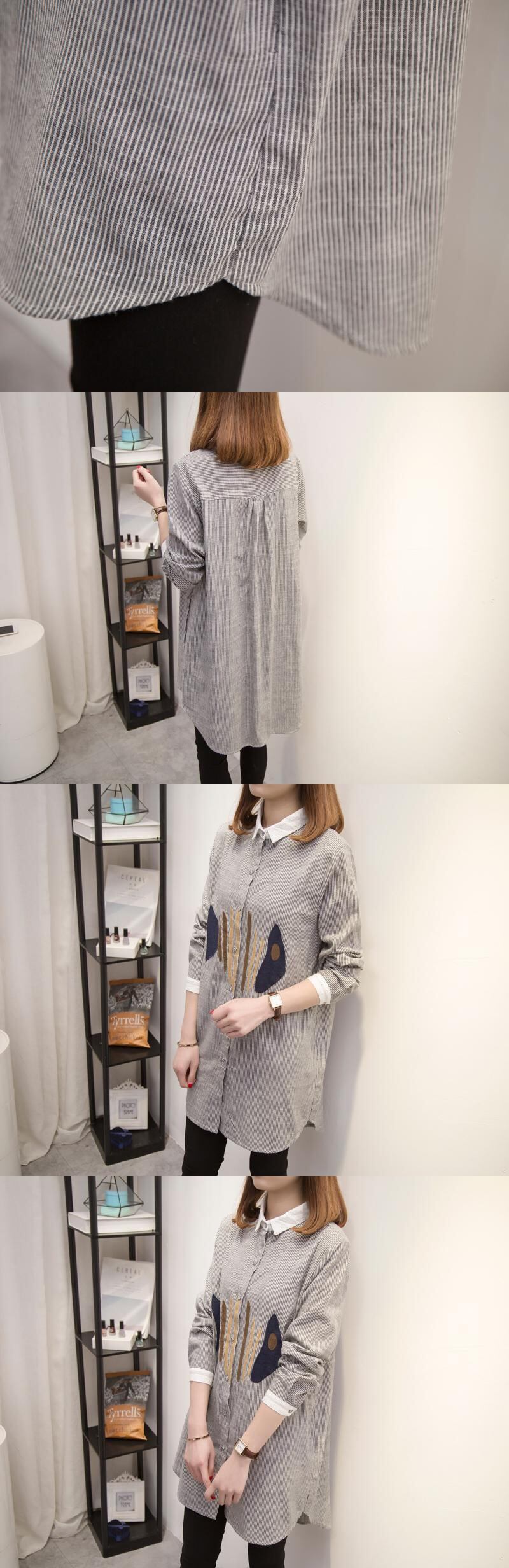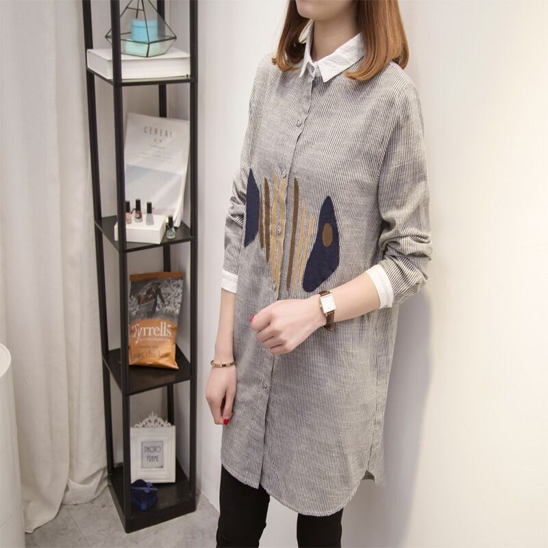 大きいサイズの婦人服2022トレンディな女性の秋の新しいシーズンのファットシスターミディアムとロングのルーズで薄いストライプのファッション刺繍シャツ レッド 大きめサイズ オータム 秋物 8884163883698078