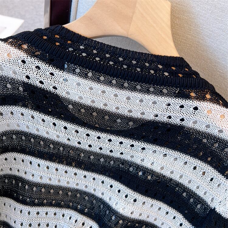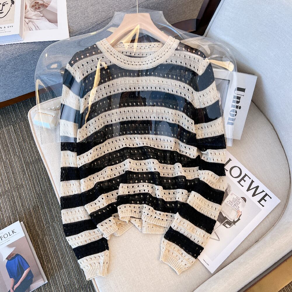 大きいサイズの婦人服 2022 秋の新しいファットシスターファッション気質デザインセンス中空ストライプ年齢を減らすセーターの女性 大きめサイズ オータム 秋物 8884177406971742