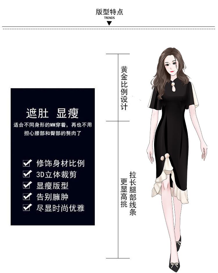 洋風改良チャイナドレス 2022年夏新作 大きいサイズ レディース おしゃれ コントラストカラー 立ち襟 半袖 ウエストワンピース トレンド 大きめサイズ サマー 夏物 8884179572717288