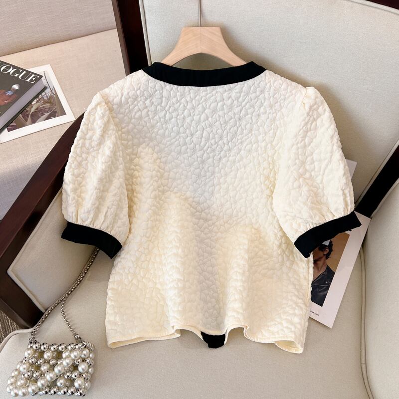 プラスサイズの婦人服 2022 ファットシスター夏の新しいファッション年齢を減らす弓ヒットカラーステッチ薄いショートトップ リボン 大きめサイズ サマー 夏物 8884158278727707