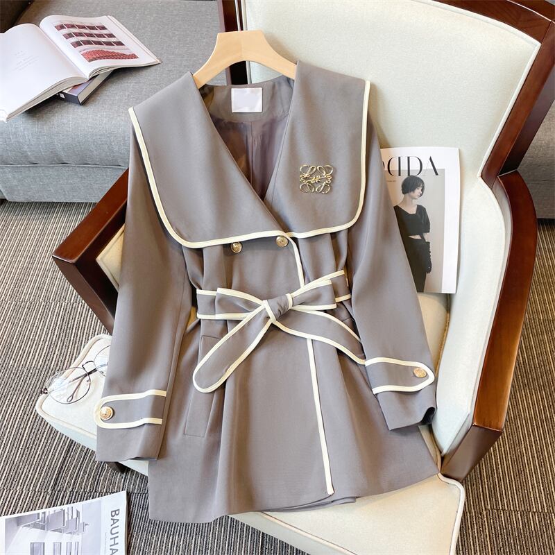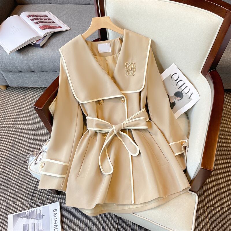 大きいサイズの婦人服 2022 ファット シスター 秋の新しいファッション 減年齢と痩身 ネイビー カラー ダブルブレスト コート レディース 大きめサイズ オータム 秋物 8884130308903888