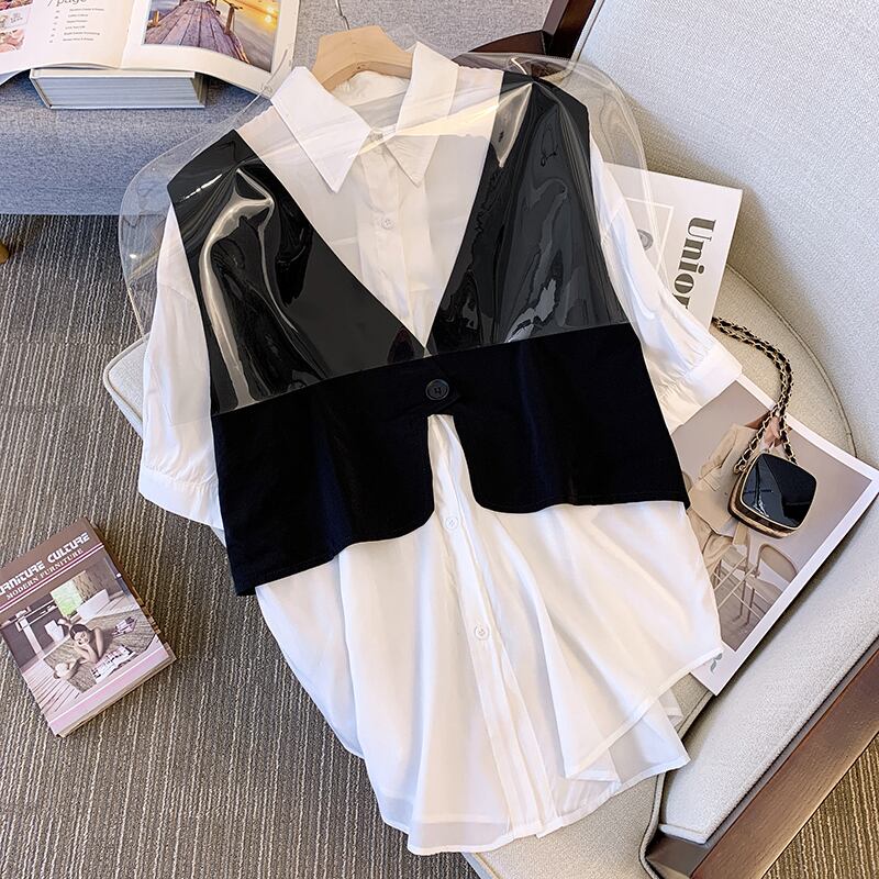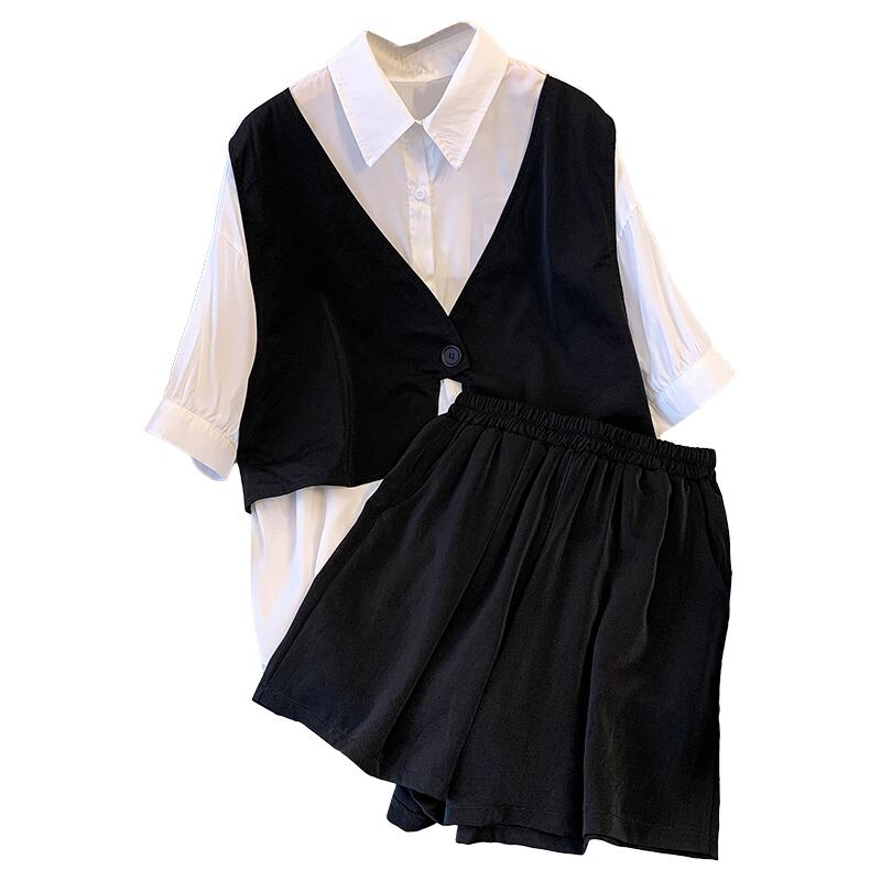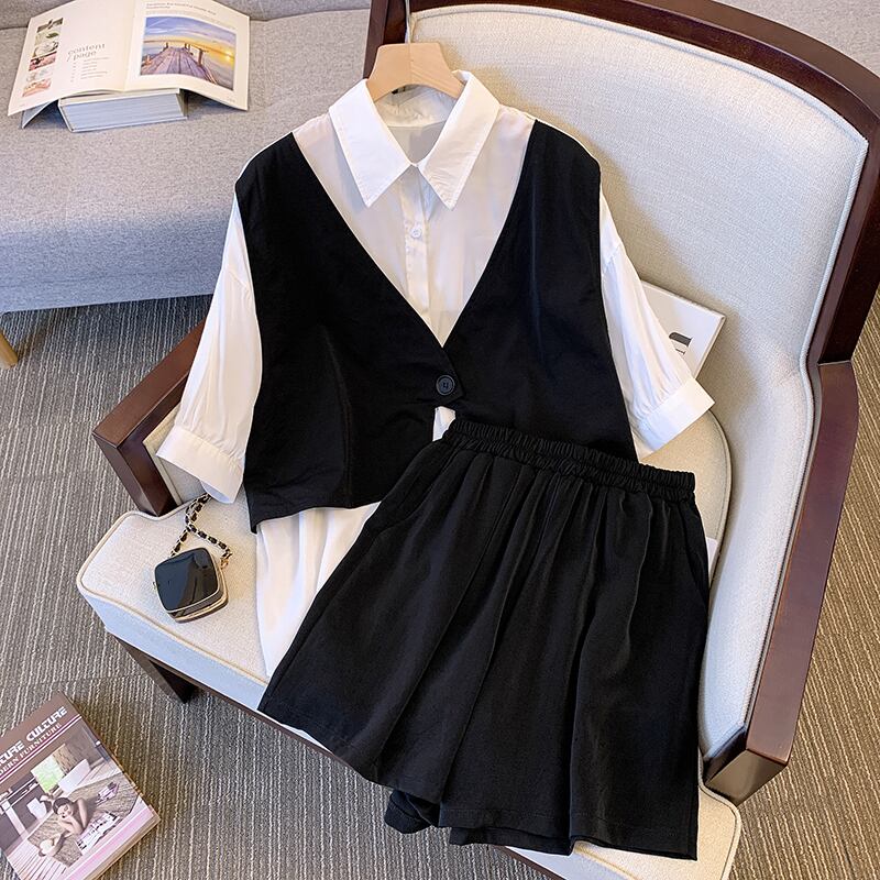 大きいサイズの婦人服 2022 ファット シスター夏の新しいファッション オールマッチ薄いルーズ シャツ ショーツ 2 点セット 大きめサイズ サマー 夏物 ブルマー 8884142313550966