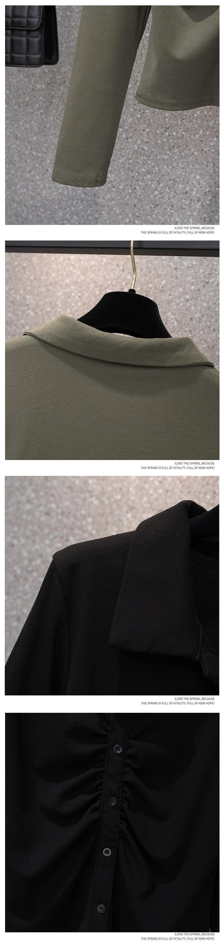 大きいサイズ 婦人服 ゆったり 薄手 長袖 2022年 新作 ウエストラペル オールマッチ 無地 ファッション Tシャツ ロング 大きめサイズ ソリッドカラー 888413736962184