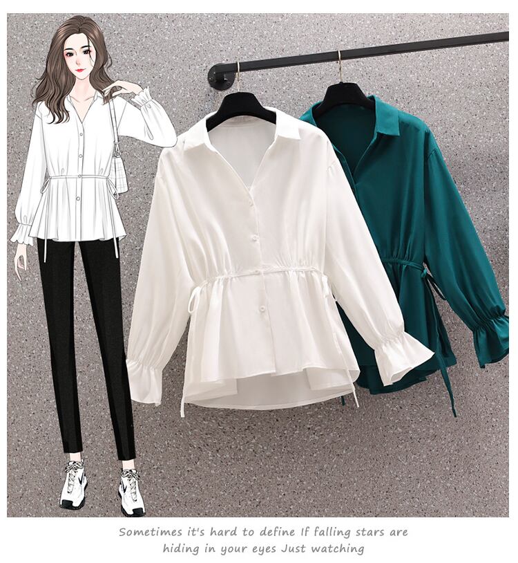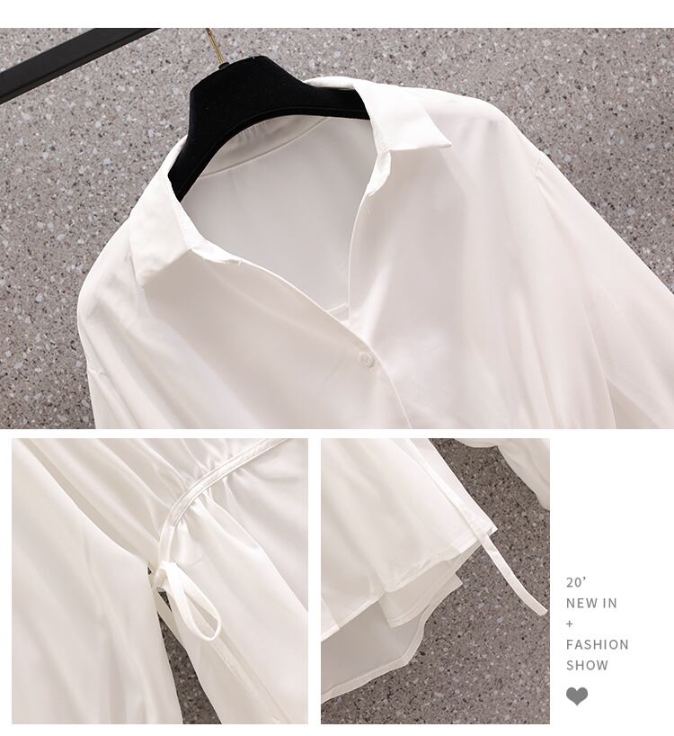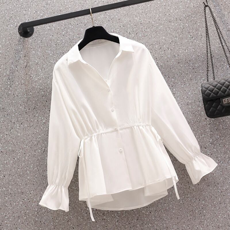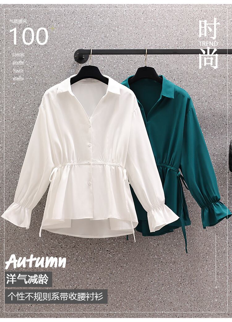 大きいサイズの婦人服 2022 秋の新しいファットシスター年齢減少ウエストゆったりと薄いデザイン無地洋風シャツ 大きめサイズ オータム 秋物 ソリッドカラー 8884179266153563