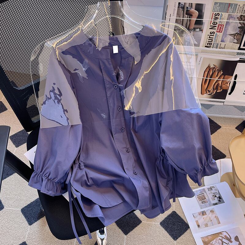 大きいサイズの婦人服2022ファットシスター秋の新しいデザインの気質の薄手で年齢を減らすシャツ洋風オールマッチトップス 大きめサイズ オータム 秋物 8884141515272836