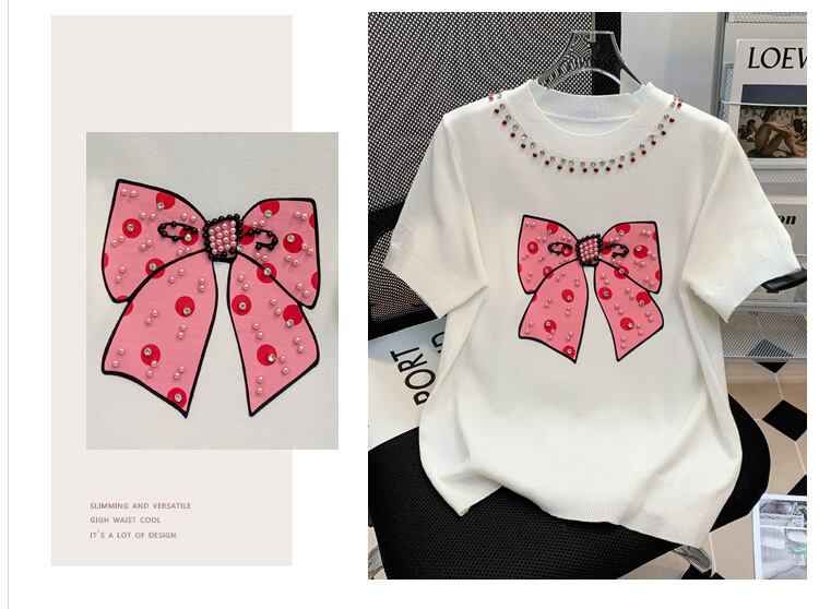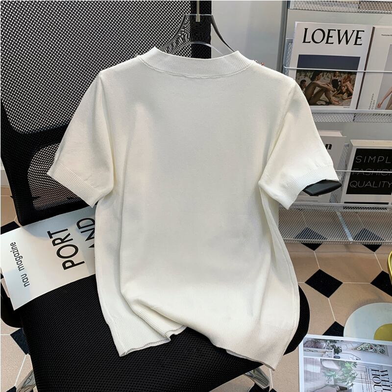 大サイズの婦人服 2022 脂肪姉妹夏の新ファッション気質ファッション重工業半袖ニットセータートップ女性 大きめサイズ サマー 夏物 8884191197473131