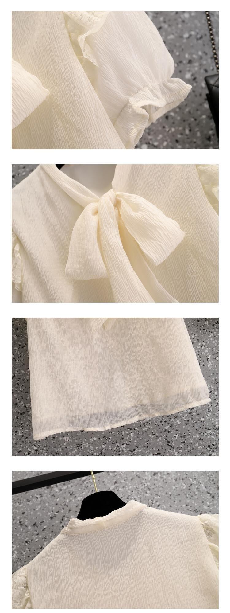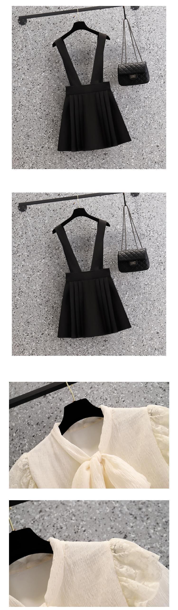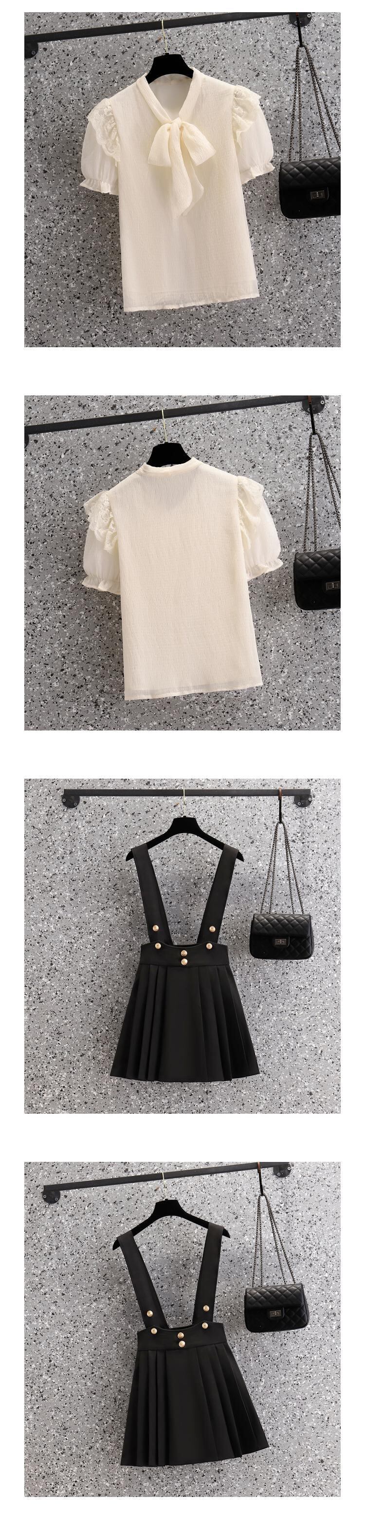 大きいサイズの婦人服 2022 夏新ファットシスターレースネクタイシャツカジュアルストラッププリーツスカートツーピーススーツ 大きめサイズ サマー 夏物 8884150438395528
