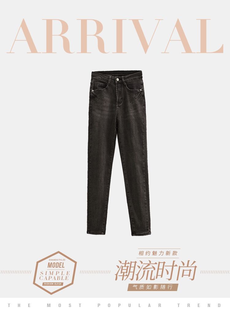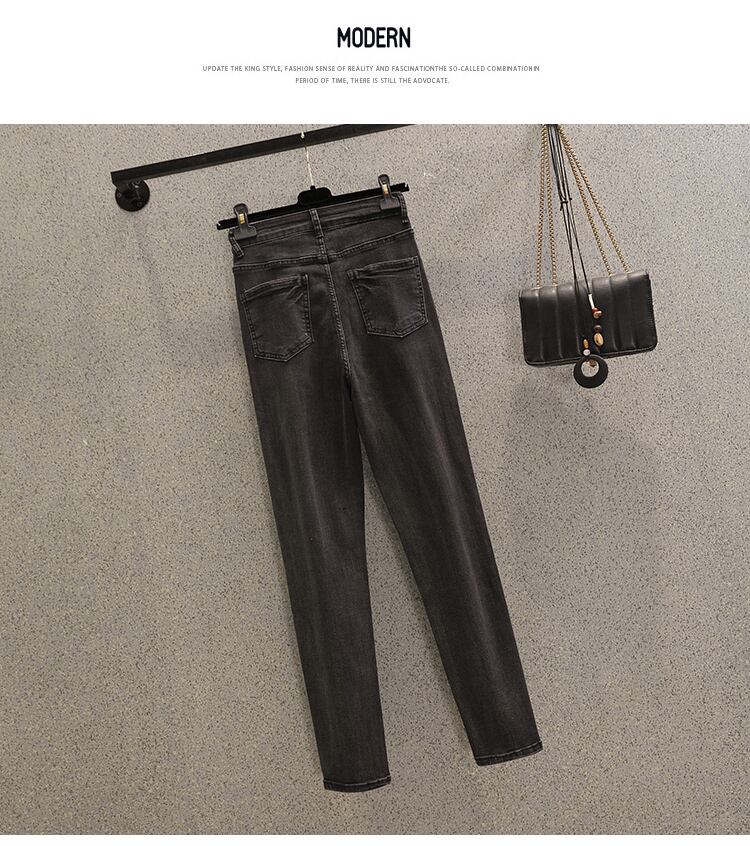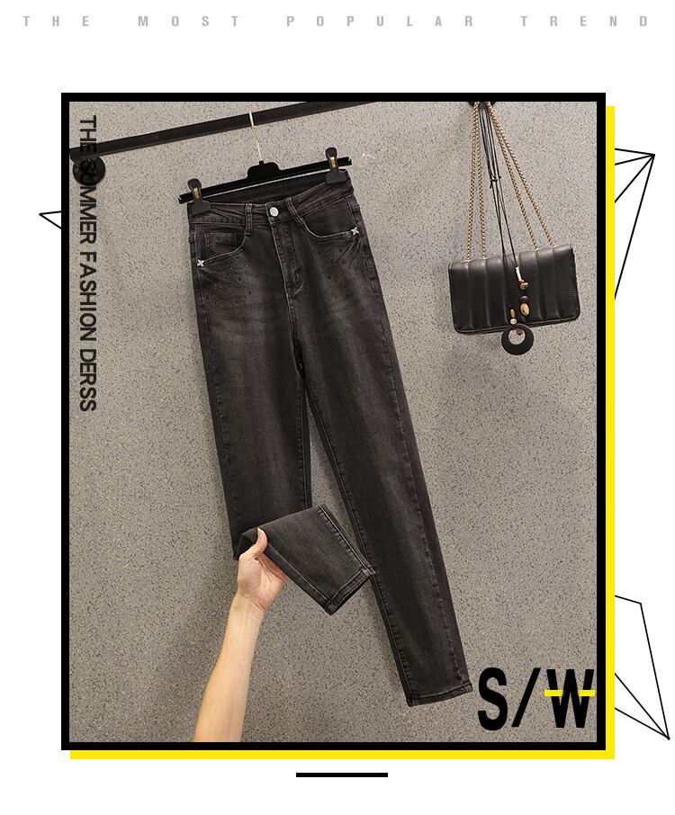 大きいサイズの女性のハイウエストのスリムなファッション ペンシル パンツ 2022 秋の新しい年齢を減らす無地オールマッチ ジーンズ ハイウェスト 大きめサイズ オータム 秋物 ソリッドカラー 8884128386722517