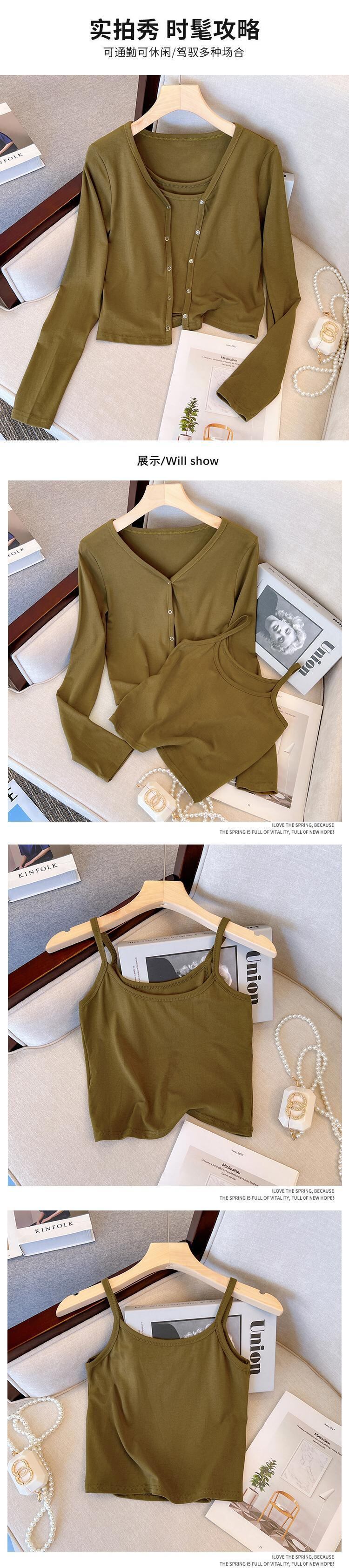 大きいサイズの婦人服 2022 ファット シスター秋の新しいスリム フィットと薄いボトムス小さなサスペンダー長袖ジャケット ツー ピース スーツ ロング 大きめサイズ オータム 秋物 8884177345818685