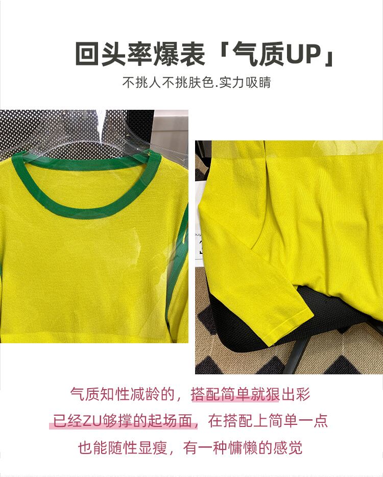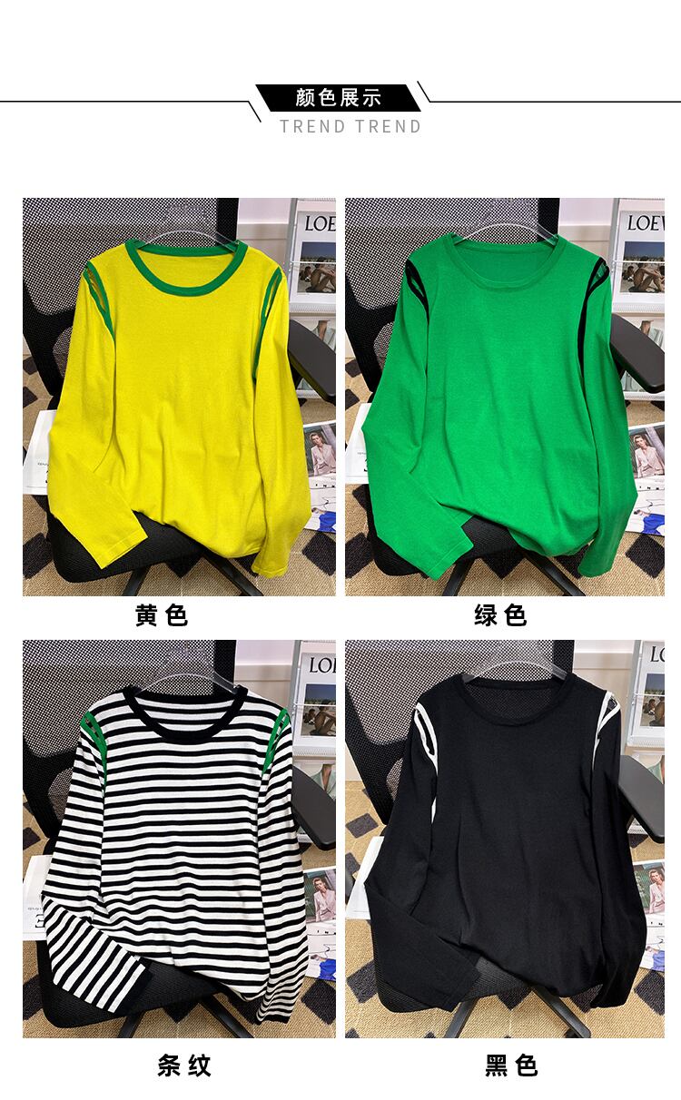 大きいサイズの婦人服 2022 秋の新しいファットシスターオールマッチルーズで薄いストラップレスのデザインストライプニットセーターの女性 大きめサイズ オータム 秋物 8884120923238301