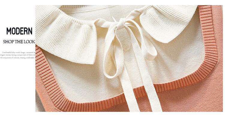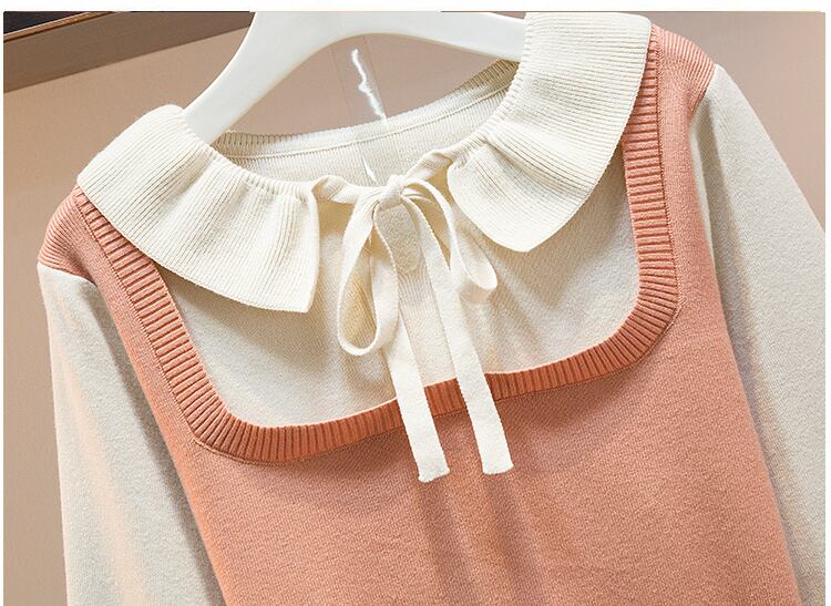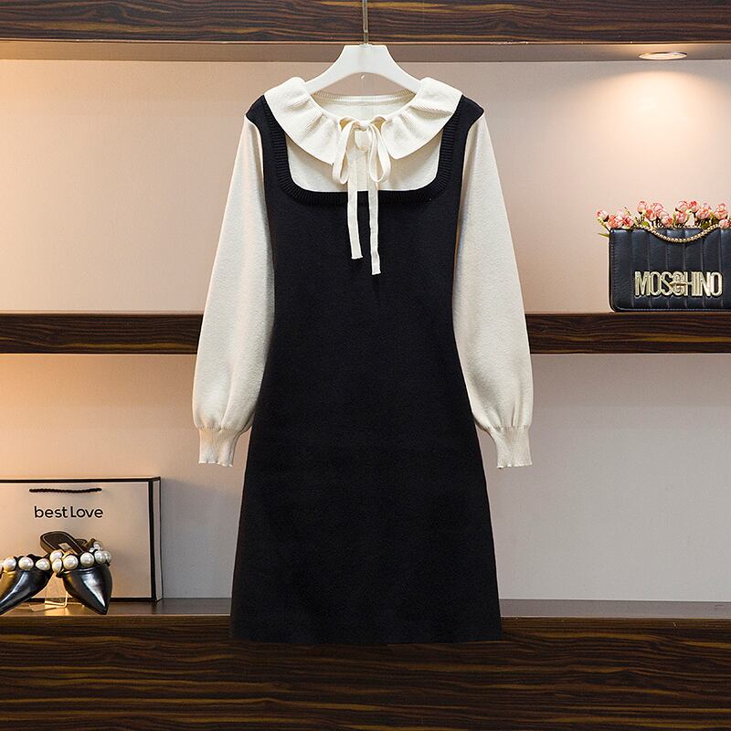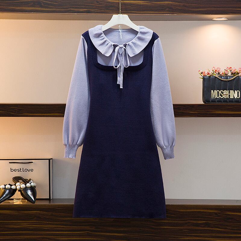 大きいサイズの婦人服 2022 秋の新しいファットシスターの年齢の減少と薄い髪のステッチの偽のツーピースのニットボトムスドレス 大きめサイズ オータム 秋物 8884130170053427