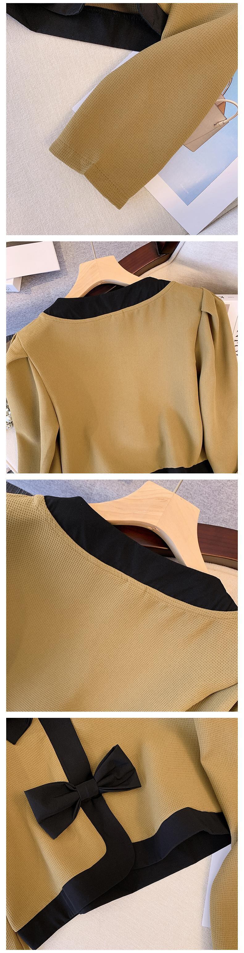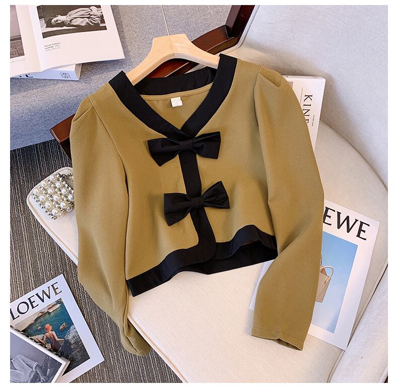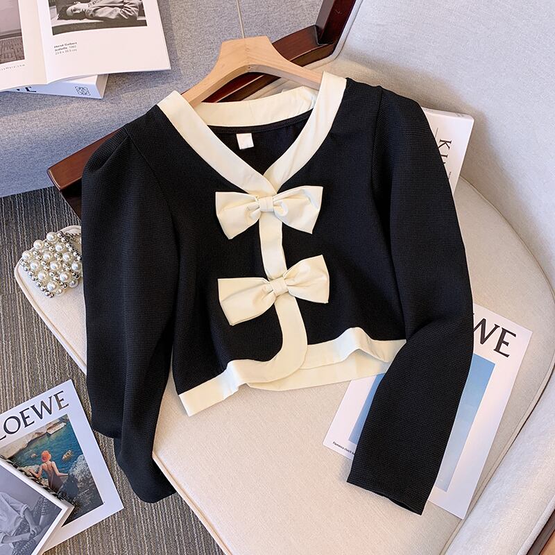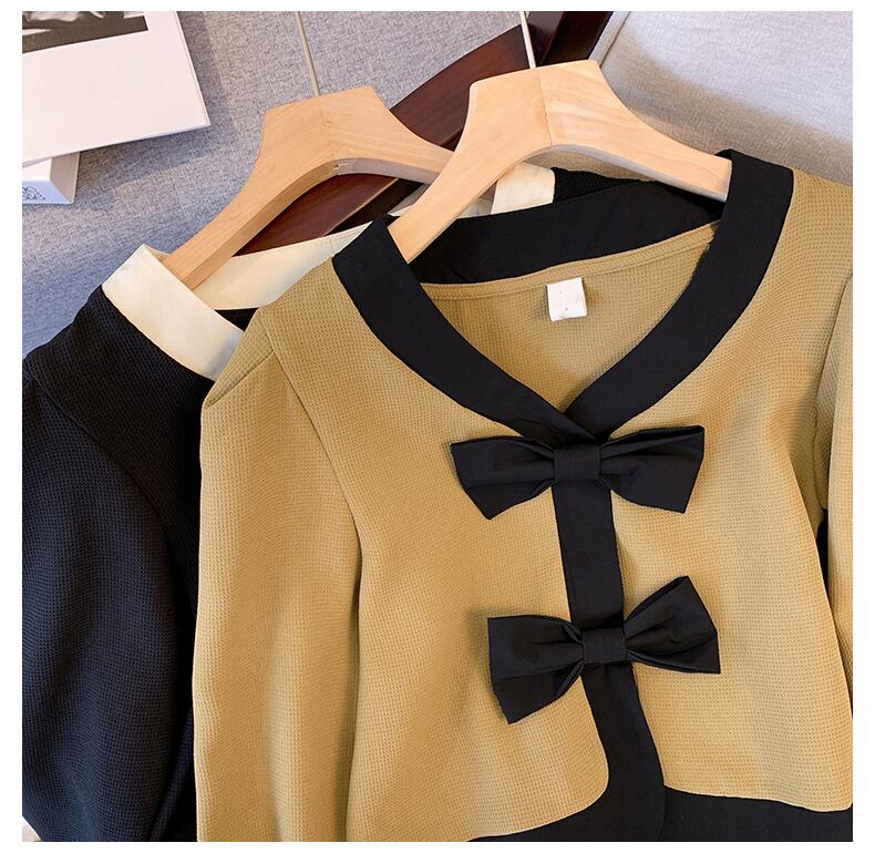大きいサイズの婦人服 2022 秋の新しいファットシスターファッションステッチ弓長袖気質オールマッチカーディガンコート ロング リボン 大きめサイズ オータム 秋物 8884192771635778