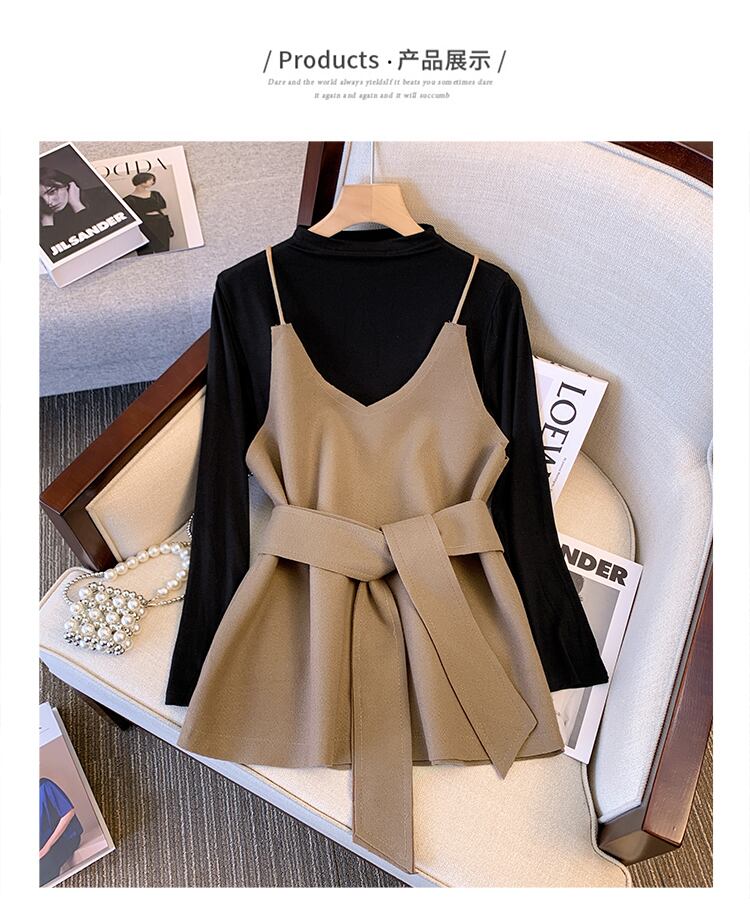 大サイズの婦人服 2022 ファットシスター秋の新スリム気質ベストベスト長袖底入れシャツツーピーススーツ ロング 大きめサイズ オータム 秋物 8884186088179416