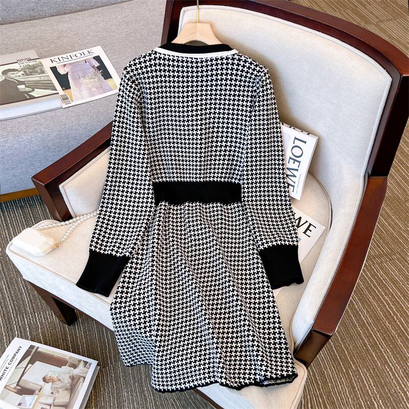 大きいサイズの婦人服2022秋の新しいファットシスターは薄くて腹と腰をカバーするデザインの千鳥格子は肉のドレスをカバーします 大きめサイズ オータム 秋物 8884118930269747