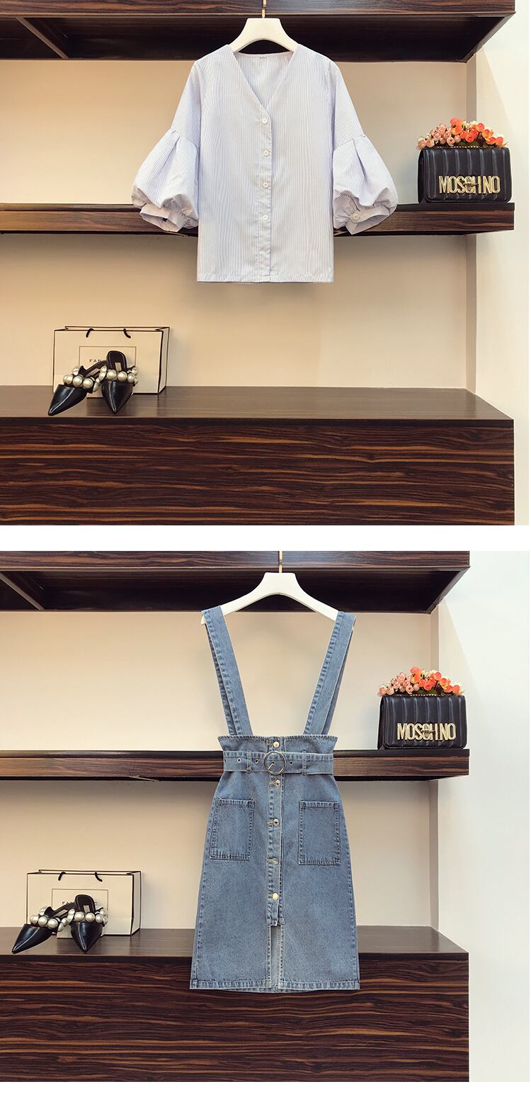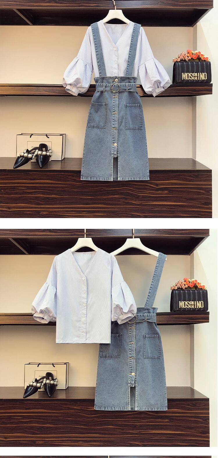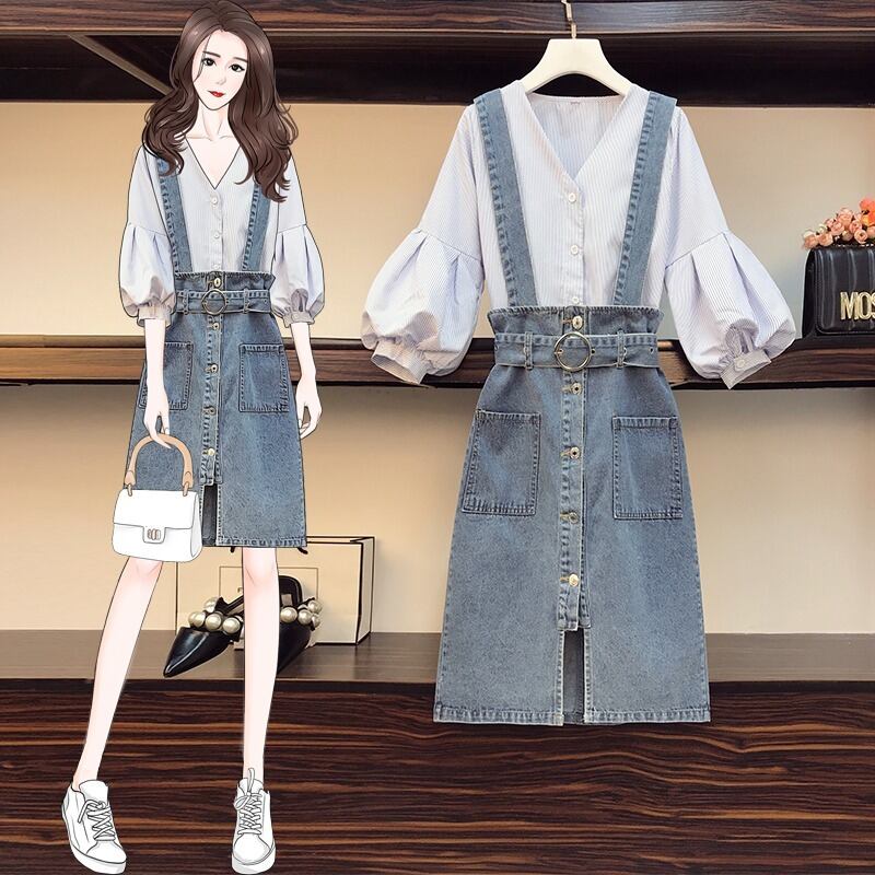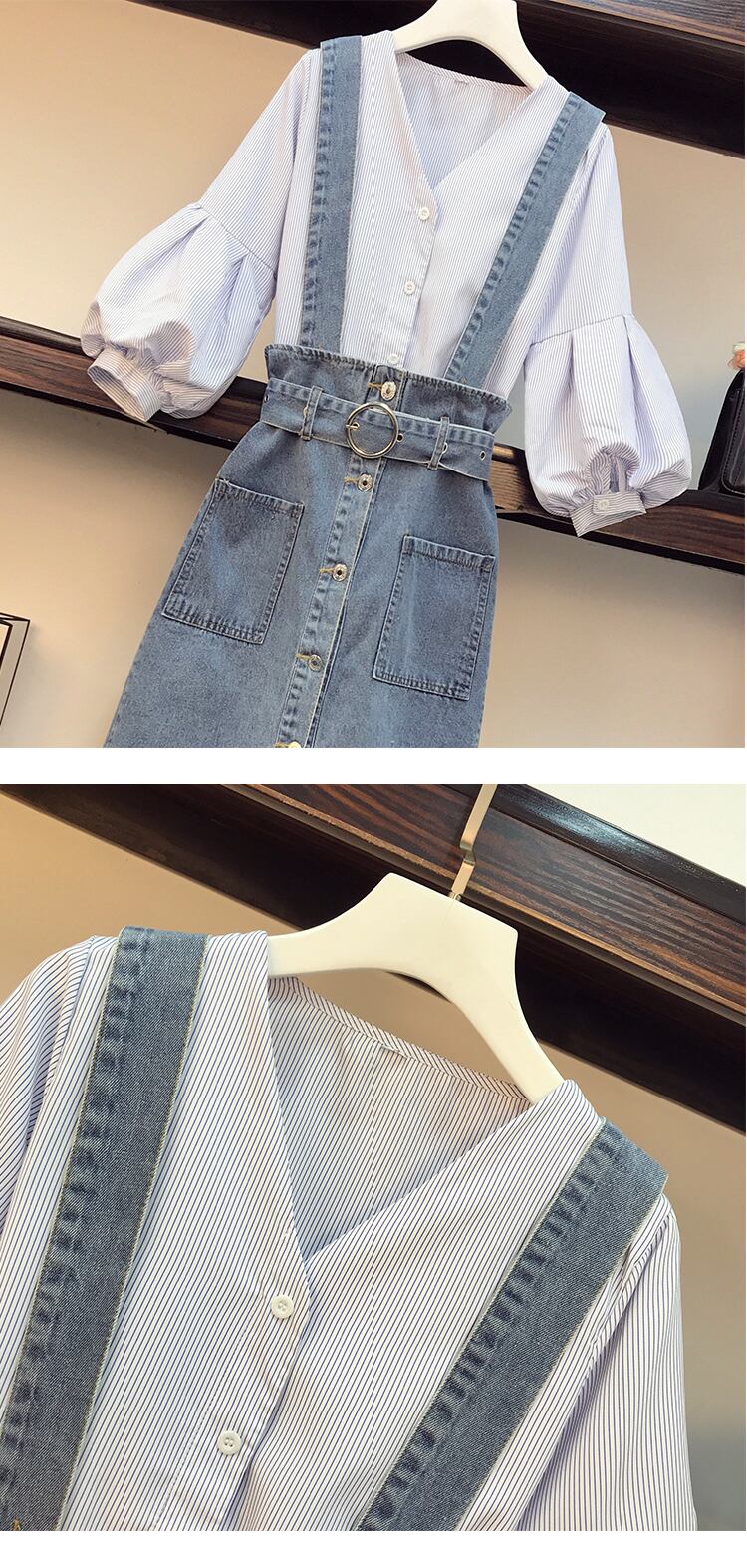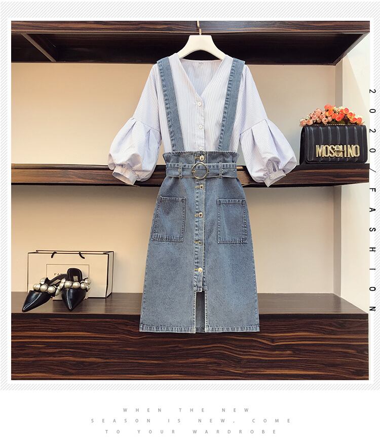 色:ストライプシャツ+ブルースカート,シングルブルースカート,シングルストライプシャツ