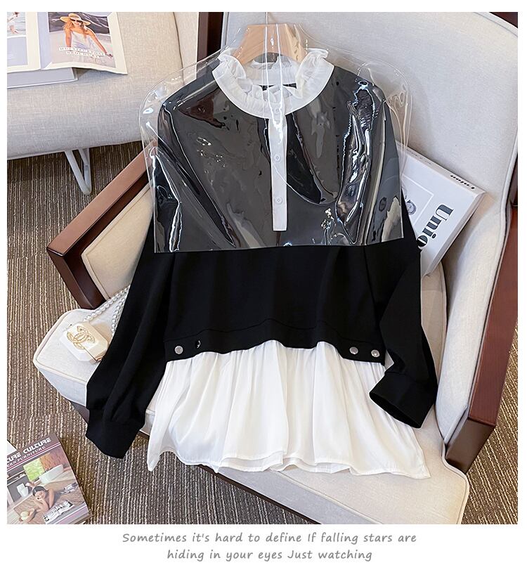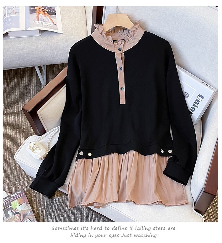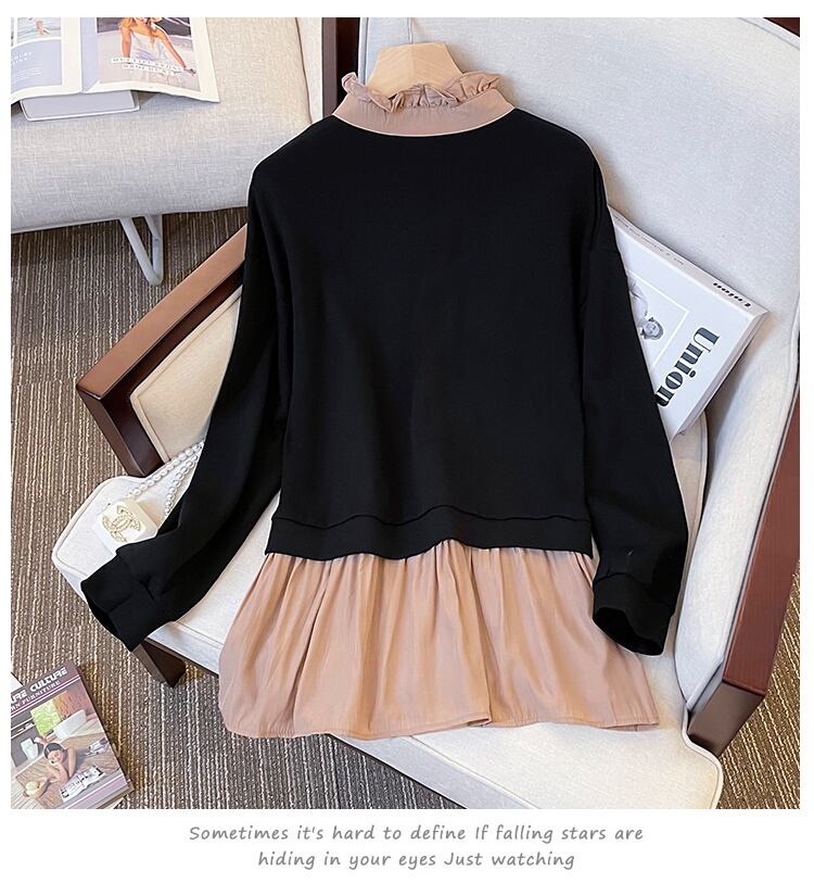 大きいサイズの婦人服 2022 秋の新しいファット シスター ルーズで薄いオールマッチ ニット ステッチ フェイク ツーピース カジュアル Tシャツ 大きめサイズ オータム 秋物 8884154923492498