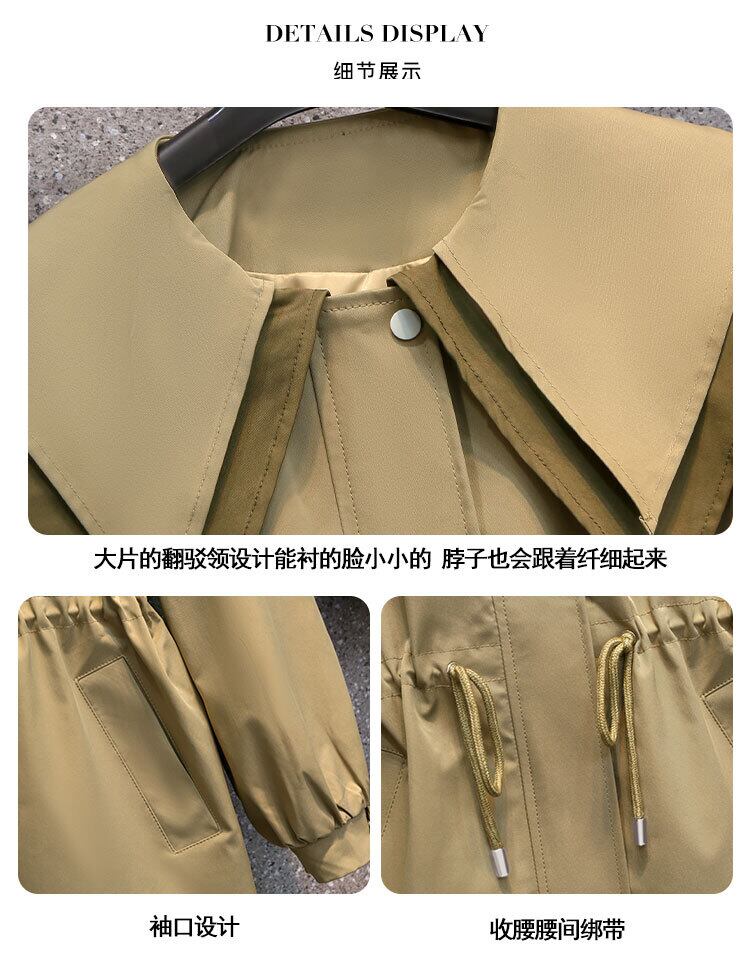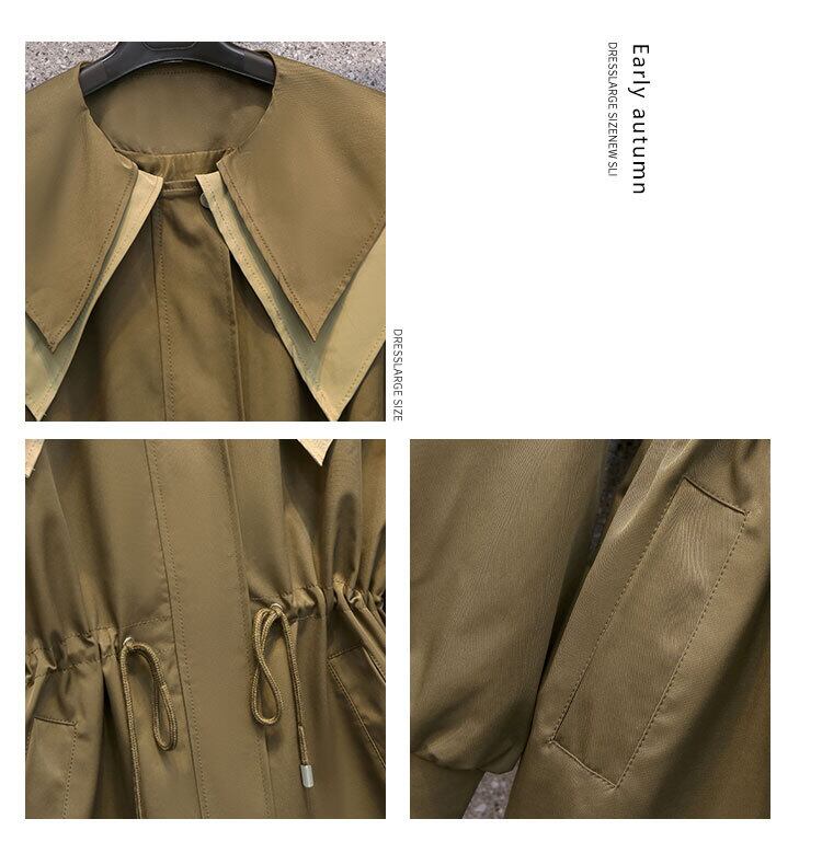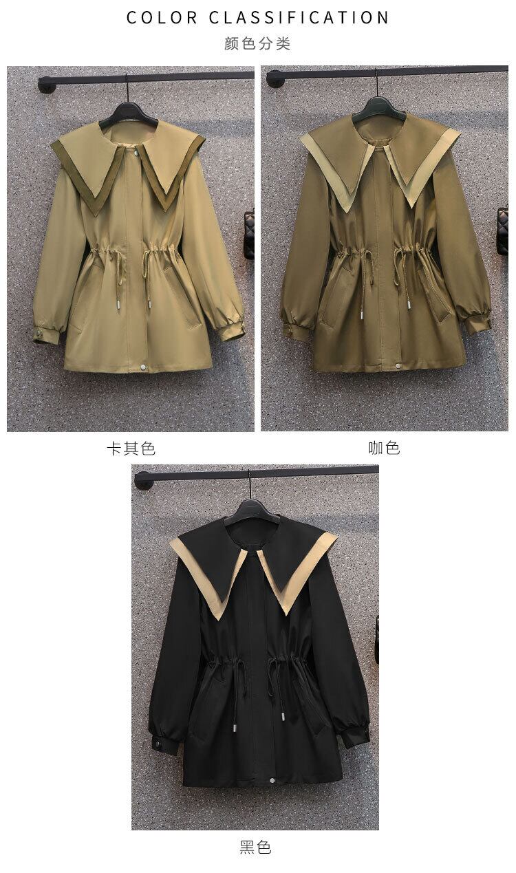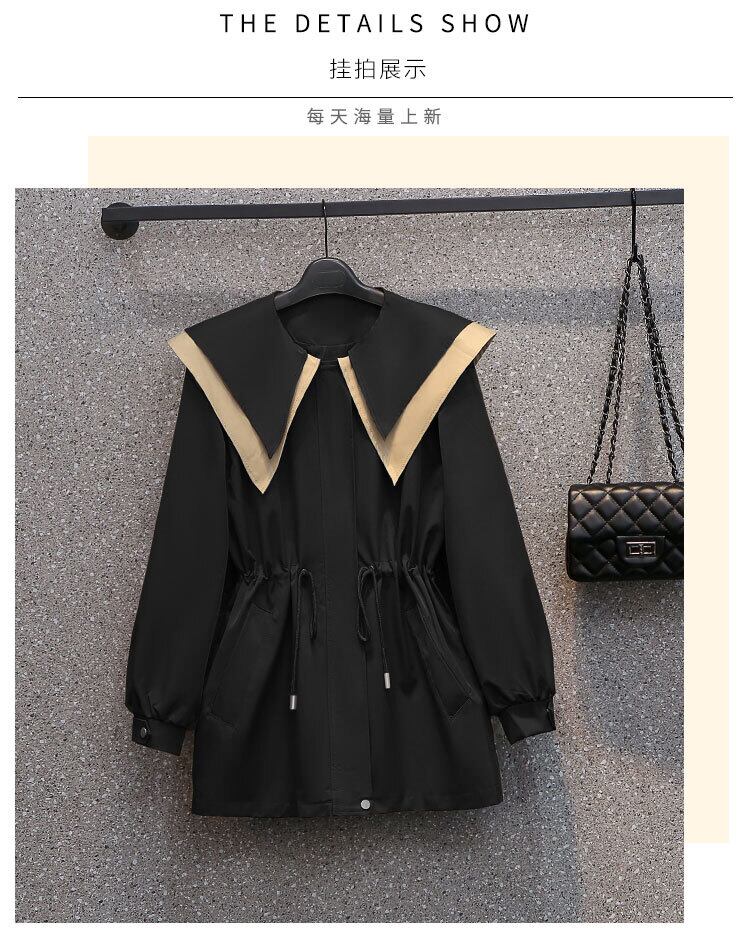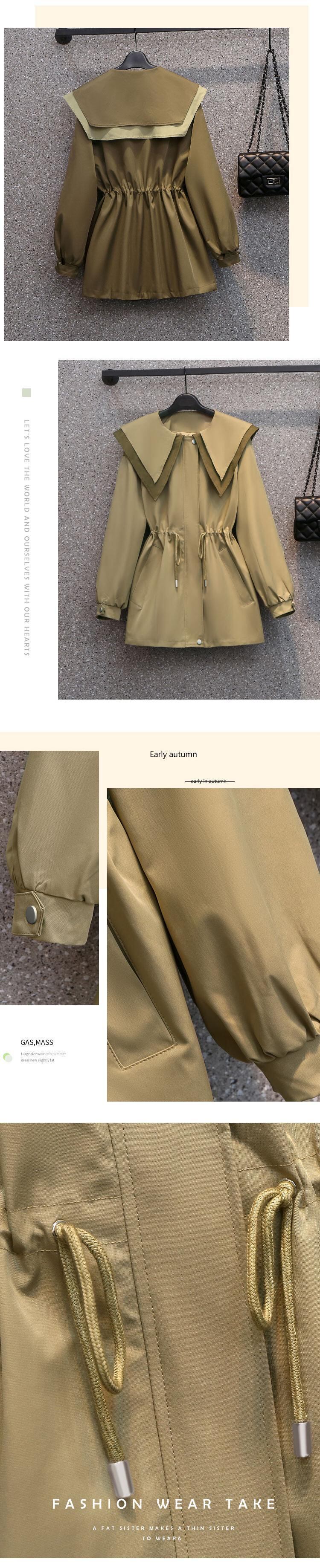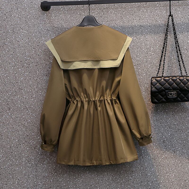 大きいサイズの婦人服2022ファットシスター秋新作洋式バージョンウエストと薄いネイビーカラーウインドブレーカーオールマッチコート 大きめサイズ オータム 秋物 8884173372853354