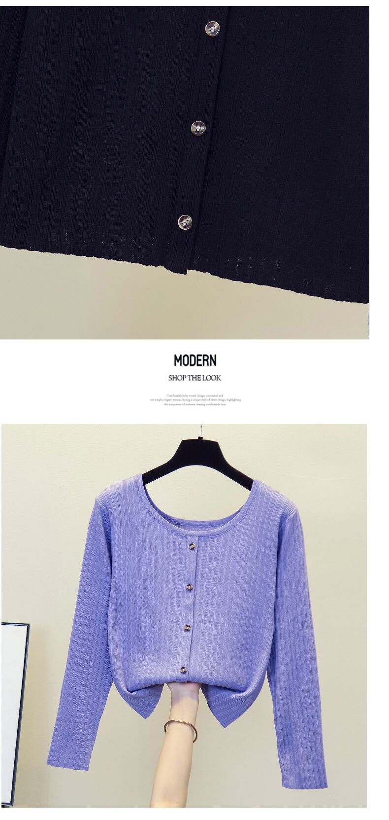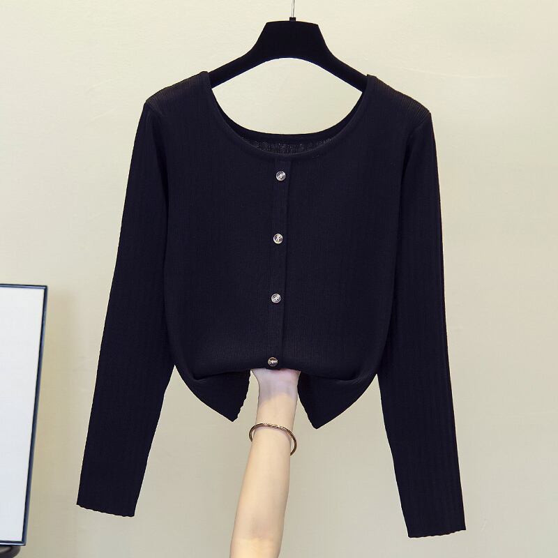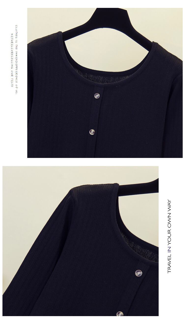 大きいサイズの女性の 2022 秋の新しいファットシスターに見える薄い無地ショート気質底入れカジュアルベリーカバーニットセーター 大きめサイズ オータム 秋物 ソリッドカラー 8884182452973071