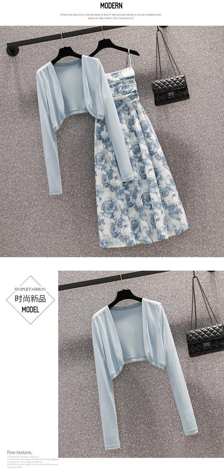 色:シングルブルーカーディガン,シングルストラップドレス