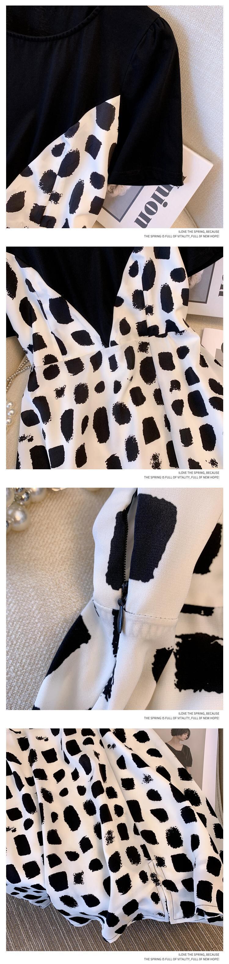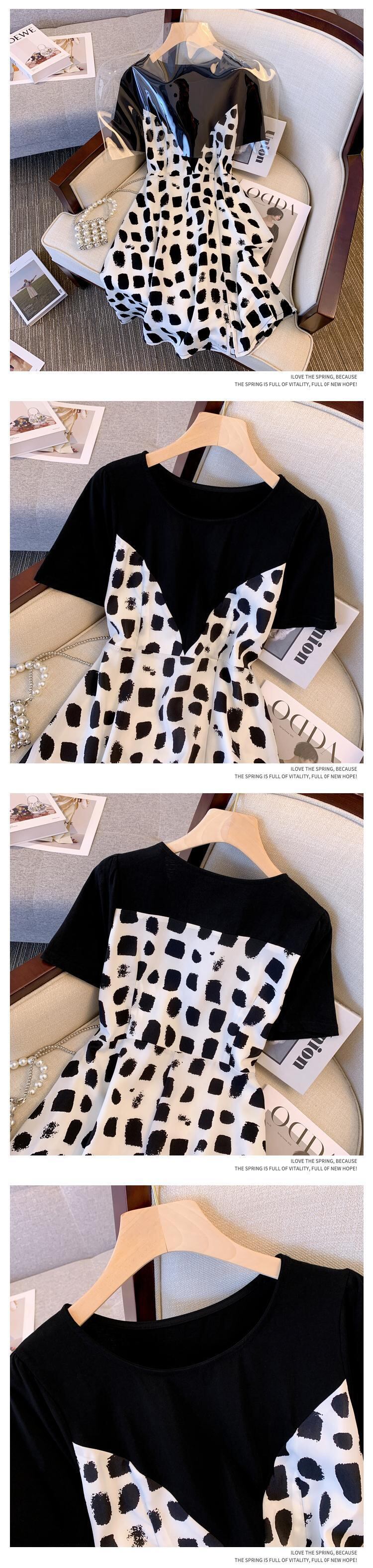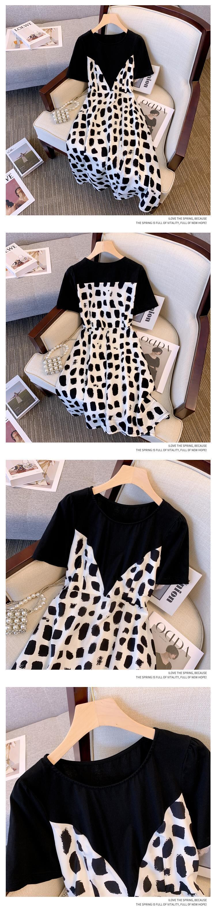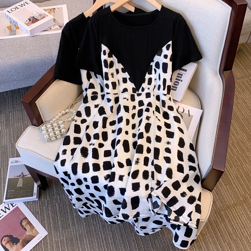 大サイズの婦人服 2022 夏の新脂肪姉妹ウエストフレンチステッチ偽のツーピースの肉を覆う気質のドレスの女性 大きめサイズ サマー 夏物 8884196047068321