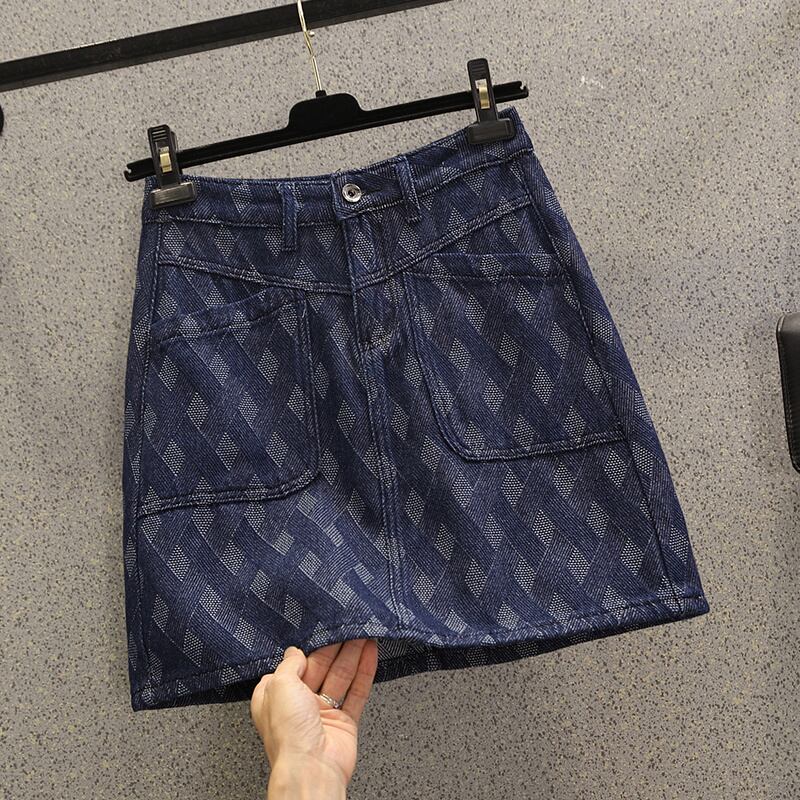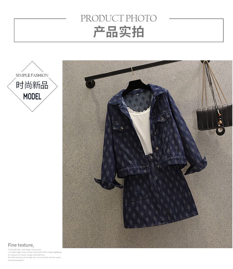 大きいサイズの婦人服 2022 ファットシスター秋の新ファッション薄いデニムジャケットハイウエストスカートツーピーススーツ ハイウェスト 大きめサイズ オータム 秋物 8884184115572286