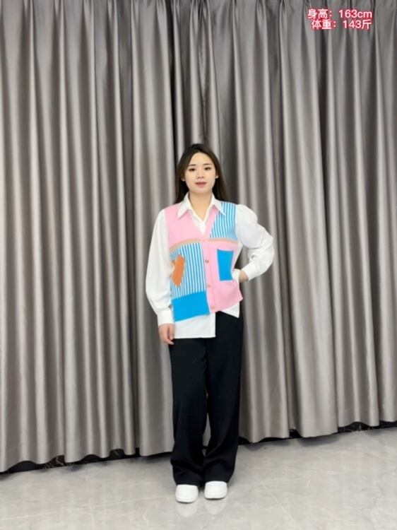大きいサイズの婦人服 2022 トレンディな女性の秋の新しいファットシスターフェイクツーピース洋風ワイルドファッションニットステッチシャツ女性 大きめサイズ オータム 秋物 8884148019424846