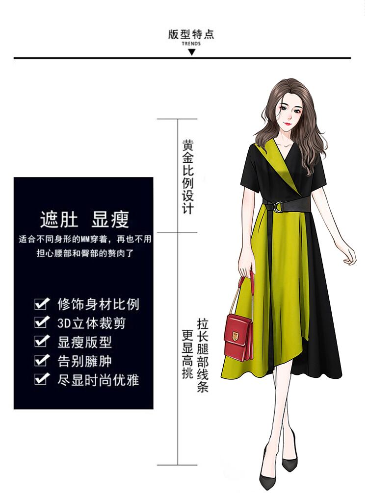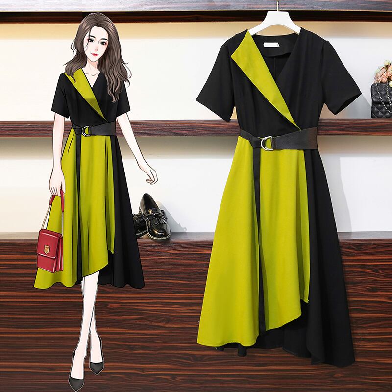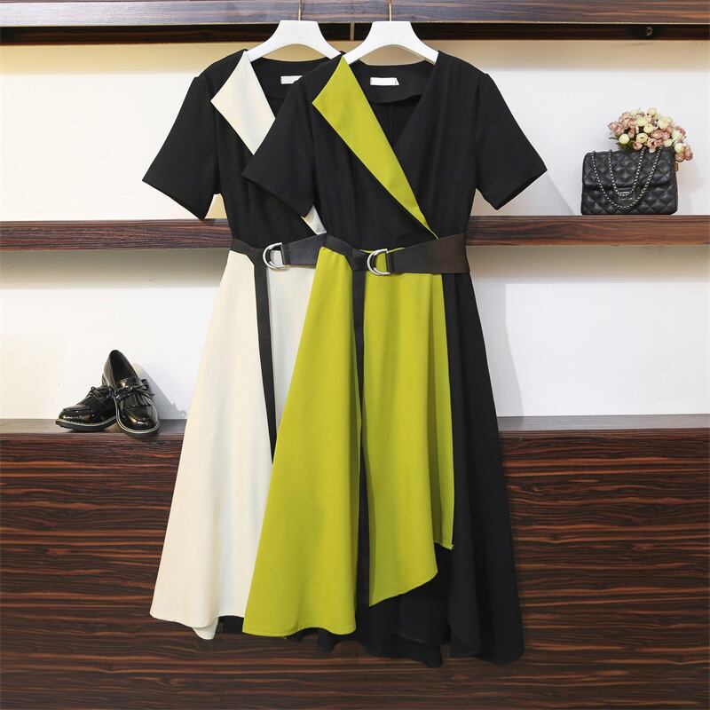 大きいサイズの婦人服 2022 トレンディな女性の夏の新しい太った姉妹のファッショナブルな気質オールマッチ薄いと対照的な色の不規則なドレス 大きめサイズ サマー 夏物 8884173973190892