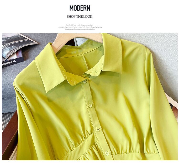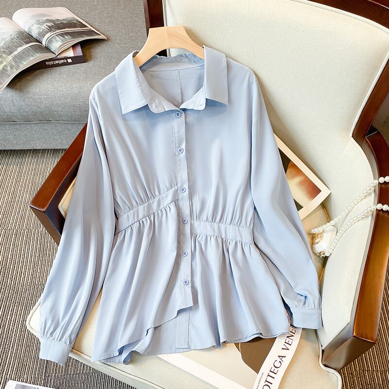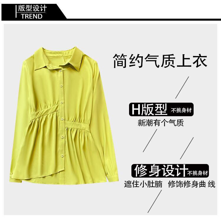 大きいサイズの婦人服 2022 秋の新しいファットシスターフレンチカジュアル無地デザインセンス肉カバーニッチファッションシャツ 大きめサイズ オータム 秋物 ソリッドカラー 8884195679996480