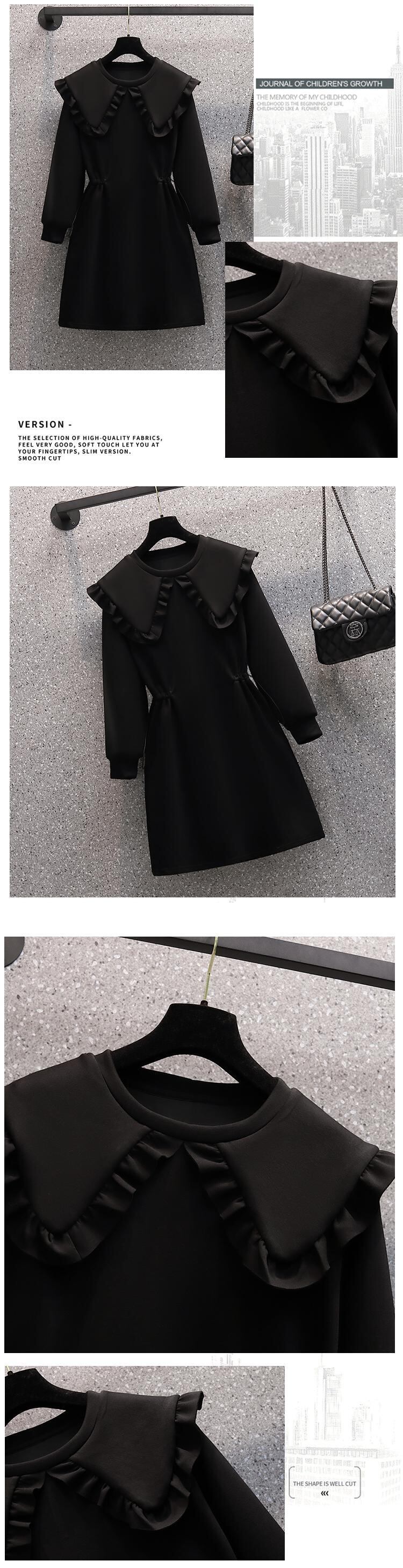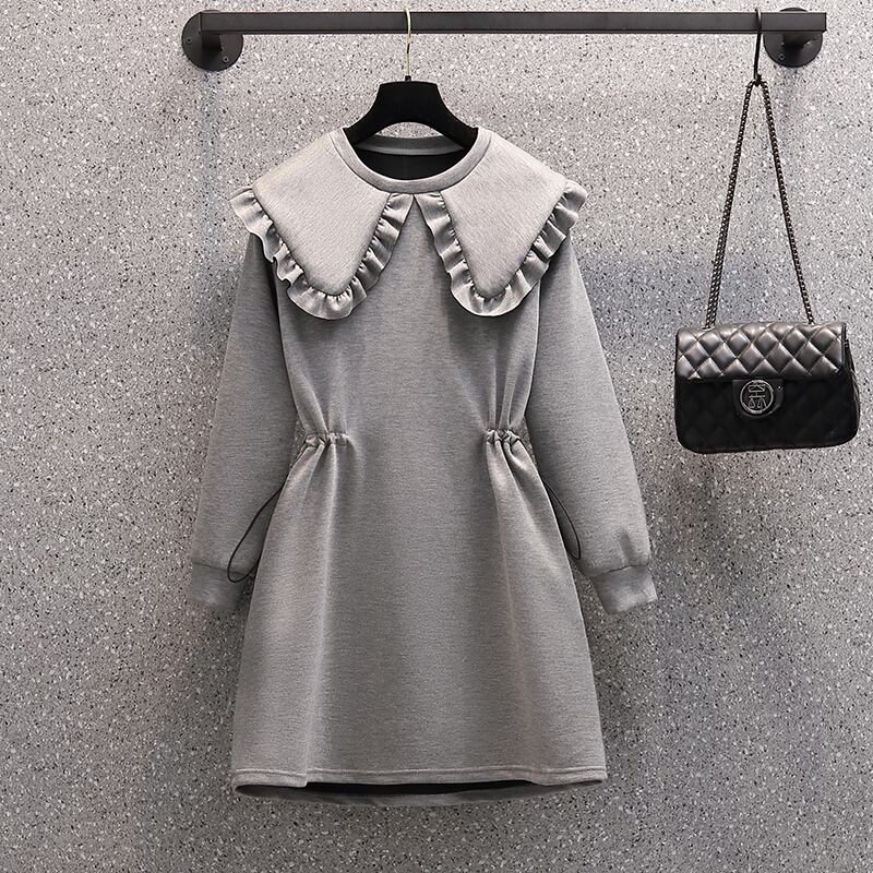 大きいサイズの婦人服 2022 ファットシスター秋新真菌エッジ老化人形の襟ルーズウエストセータードレス 大きめサイズ オータム 秋物 8884116009541464