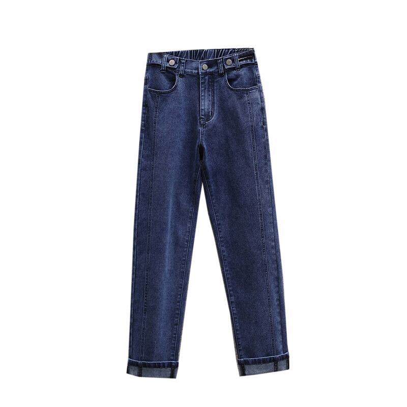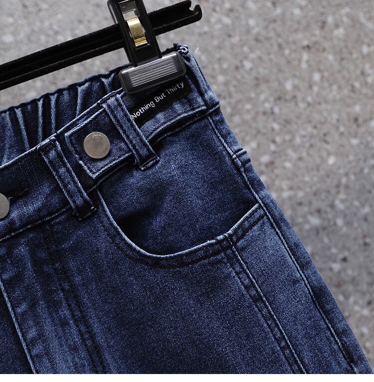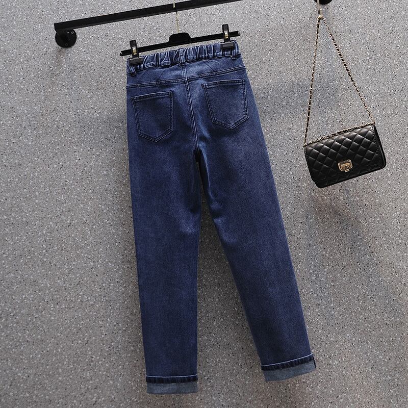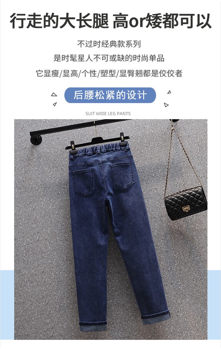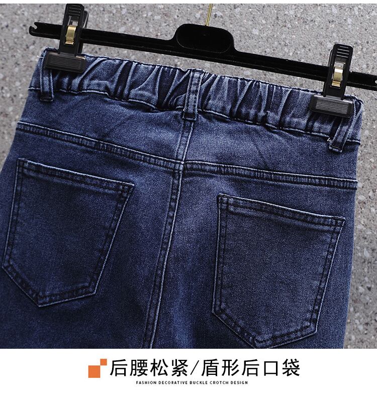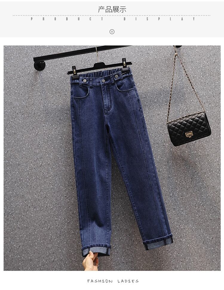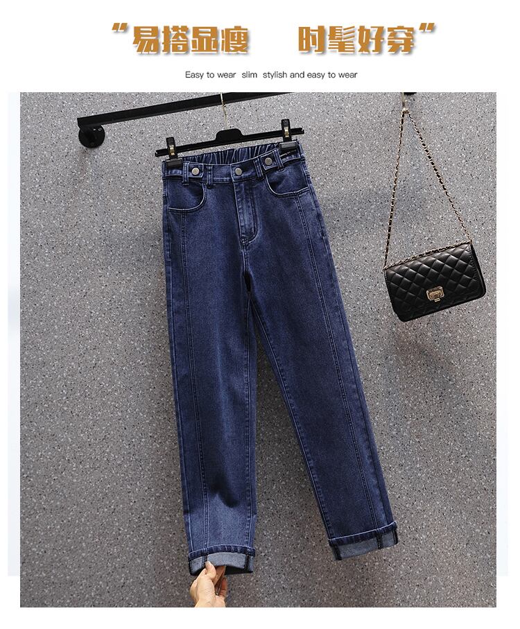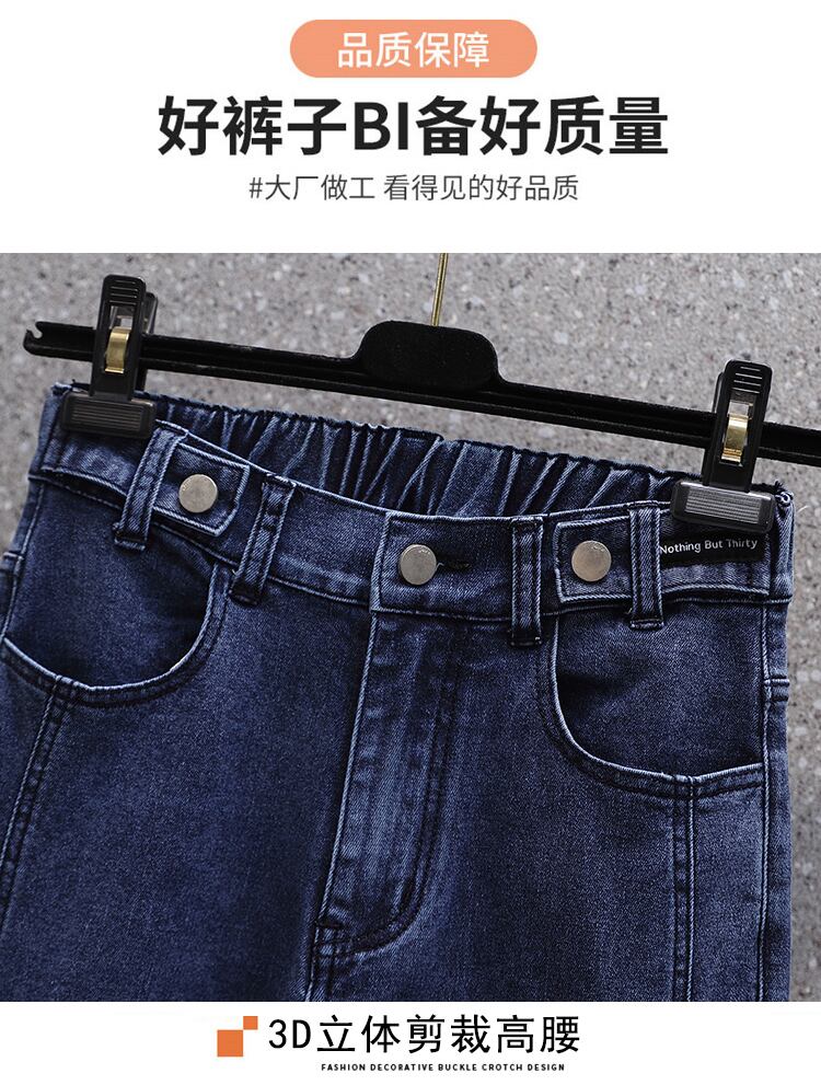 大きいサイズの婦人服 2022 秋の新しい太った妹は薄くてハイウエストのオールマッチの気質のカジュアルな肉を覆う気質のジーンズです ハイウェスト 大きめサイズ オータム 秋物 8884114339318613
