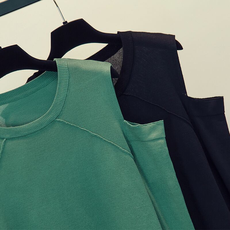 大きいサイズの婦人服2022秋の新しいファットシスターは薄いデザインのオフショルダートップ無地の年齢を減らすセーターの女性です 大きめサイズ オータム 秋物 ソリッドカラー 8884180981837752