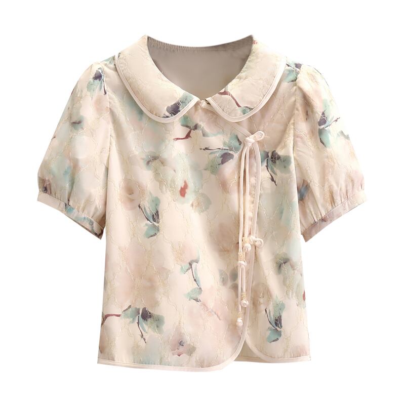 2022 夏新大サイズの女性のフランスのレトロな人形の襟花柄のデザインセンスオールマッチチャイナシャツトレンド 大きめサイズ サマー 夏物 8884174456030792