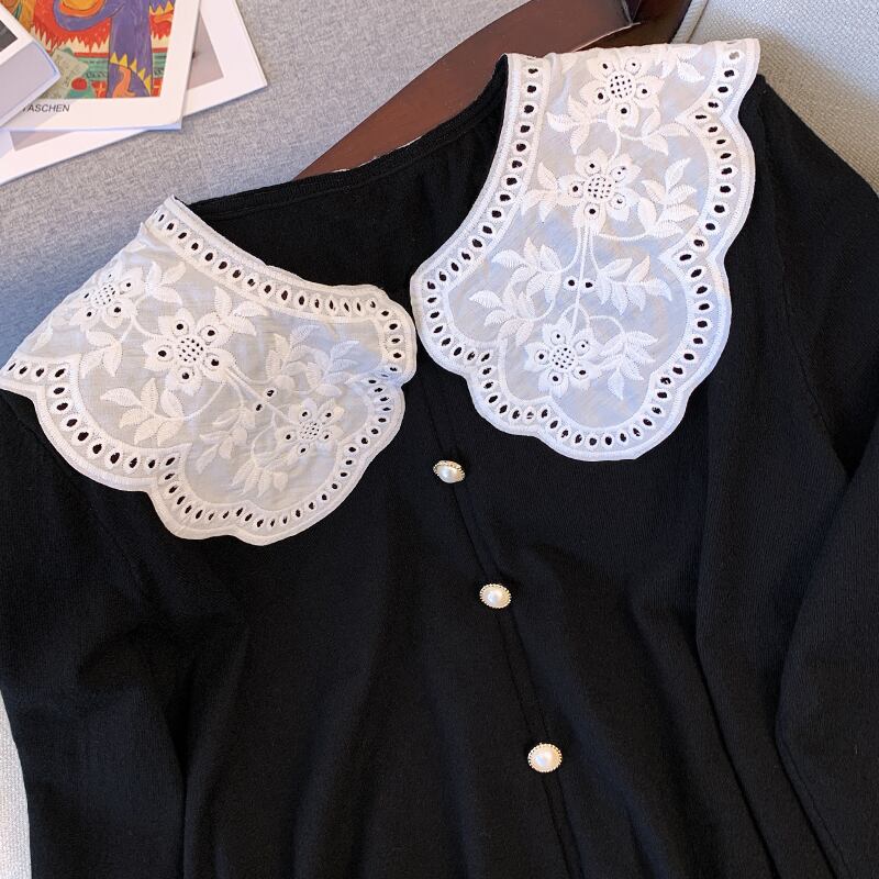 大サイズの婦人服 2022 秋の新ファットシスターステッチ人形の襟のデザインセンスカバー腹ニッチ気質セーター 大きめサイズ オータム 秋物 8884196478620813