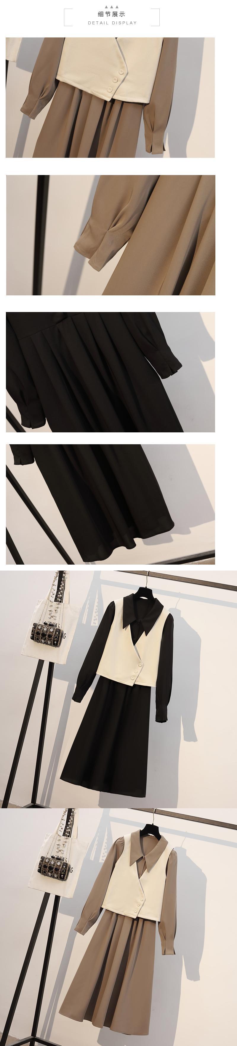 大きいサイズの婦人服 2022 ファットシスター秋の新しいスタイルの西洋スタイルの年齢を減らすベストの気質のドレス痩身ツーピースのスーツ 大きめサイズ オータム 秋物 8884141304041762