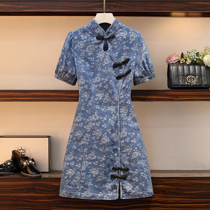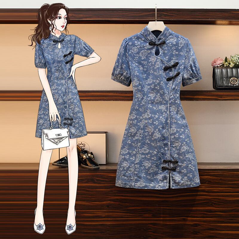 大きいサイズの婦人服 2022 ファットシスター夏の新しいファッションレトロな洋風カバーリング肉腰チャイナドレス 大きめサイズ サマー 夏物 888419626551850