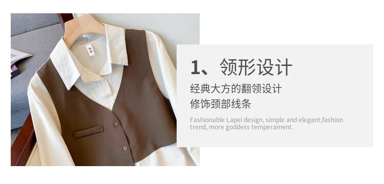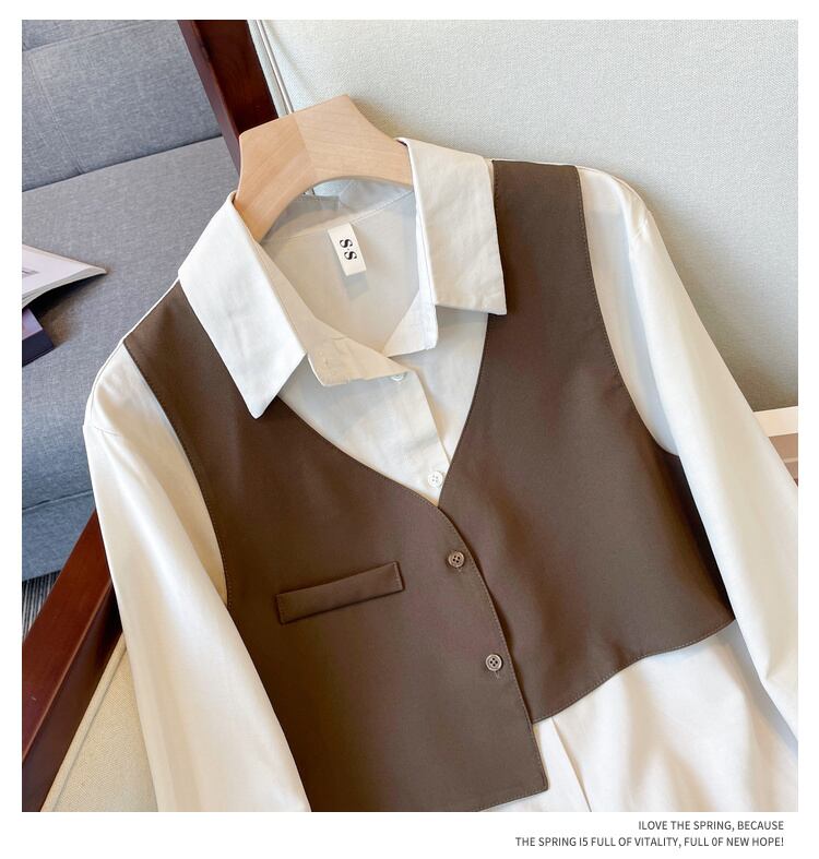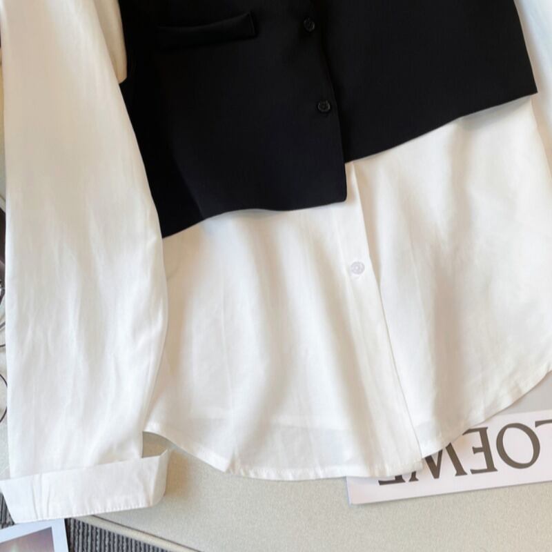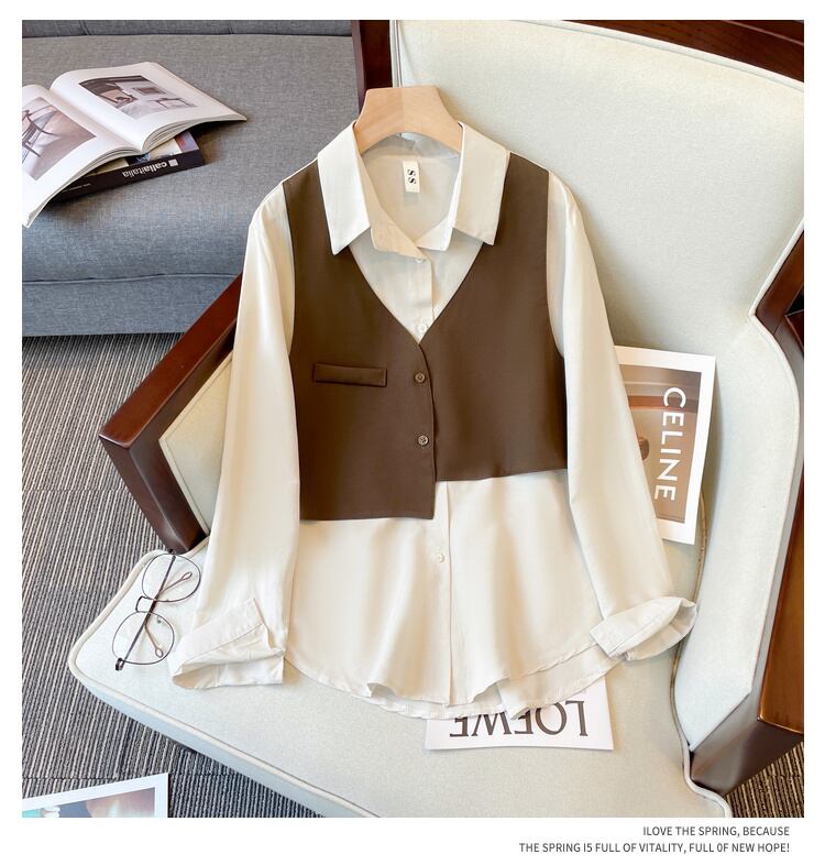 大きいサイズの女性の 2022 秋の新しいファット シスター ルーズ ステッチ フェイク ツーピース トップスは、肉をカバーし、薄くてニッチな気質を示します 大きめサイズ オータム 秋物 888411501912245
