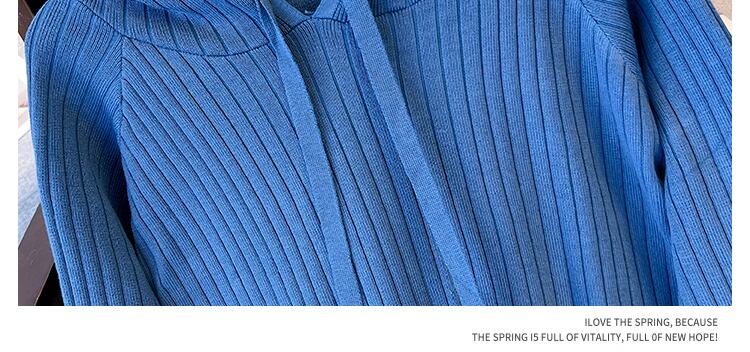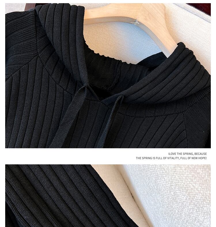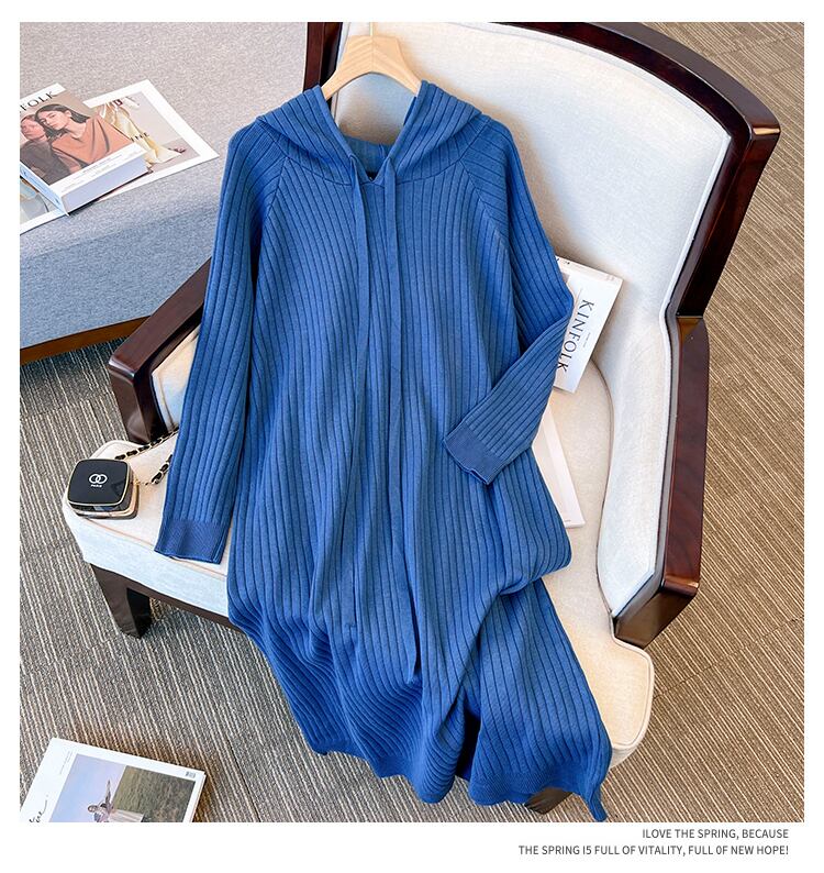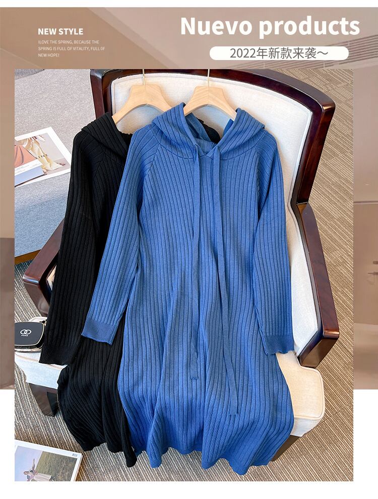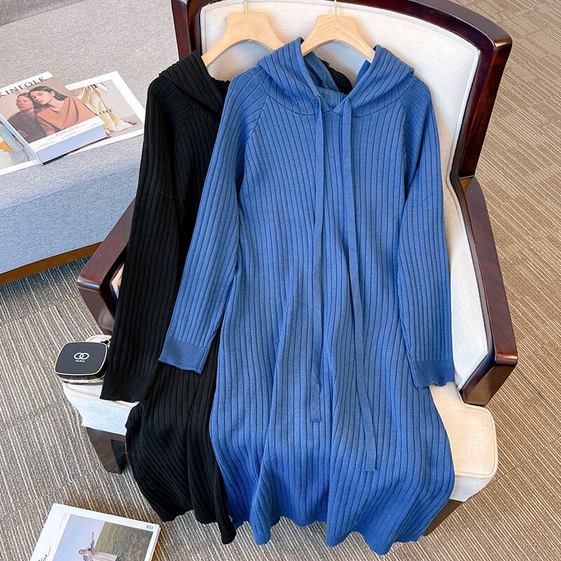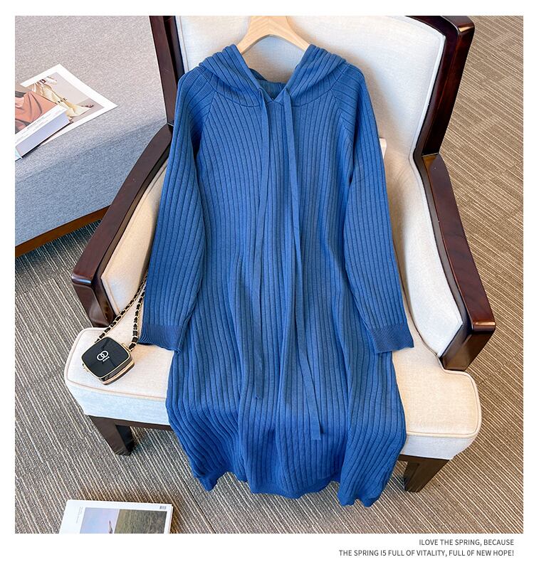 大きいサイズの女性の 2022 秋の新しいファット シスター バージョンルーズで薄いニット フード付き無地ドレス 大きめサイズ オータム 秋物 ソリッドカラー 8884167656251413