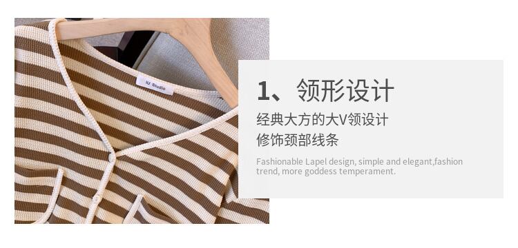 大きいサイズの婦人服2022秋の新しいファットシスターファッショナブルな気質のカジュアルなストライプのカーディガンは、肉を覆い、薄いニットのセーターを見せます 大きめサイズ オータム 秋物 8884197230435358
