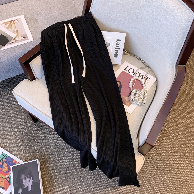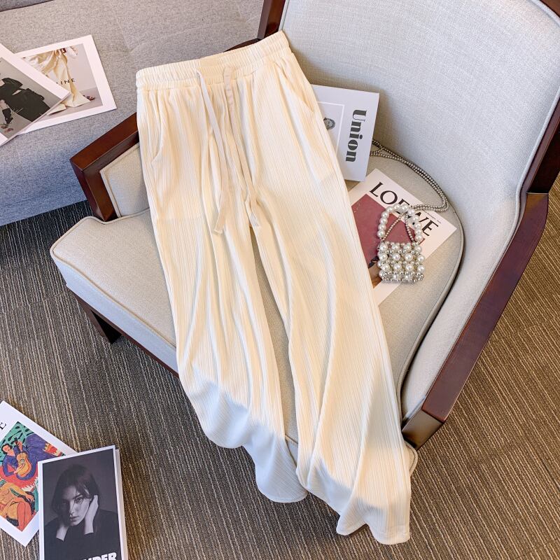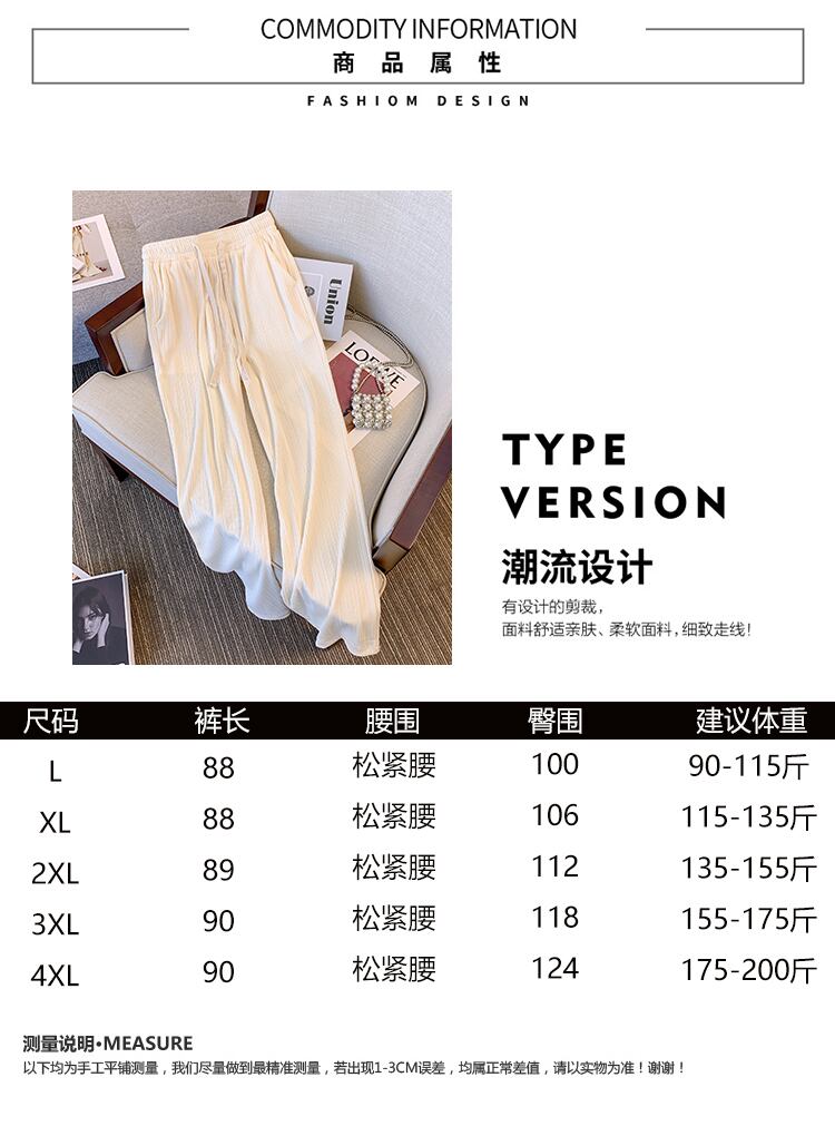 大サイズの婦人服 2022 ファットシスター夏新アイスシルクワイドレッグパンツ薄肉ハイウエストドレープカジュアルストレートパンツ女性 ハイウェスト 大きめサイズ サマー 夏物 ワイドパンツ 8884170107417014