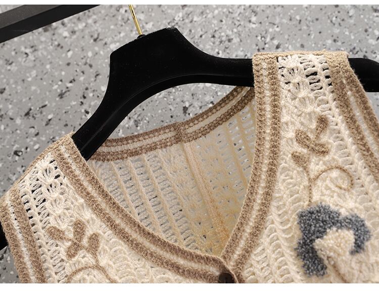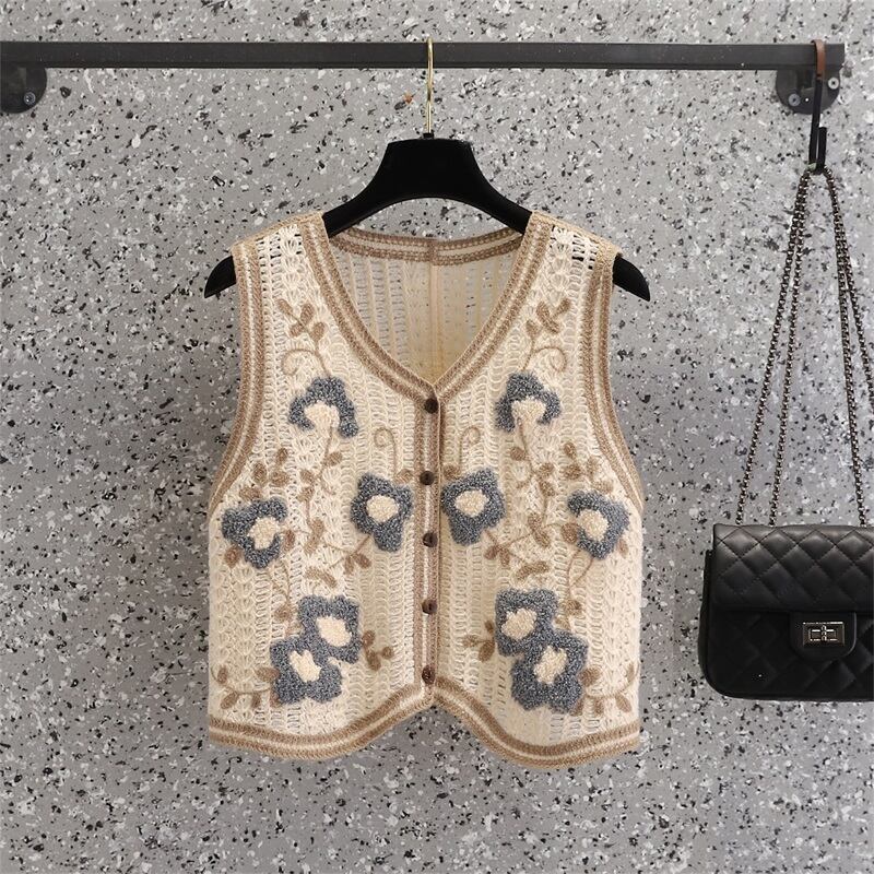 大きいサイズの婦人服 2022 ファット シスター シーズンと秋の新しいルーズ ニット カーディガン外ベストチョッキ小さな花ベスト 大きめサイズ オータム 秋物 フラワーデザイン 8884161693614404
