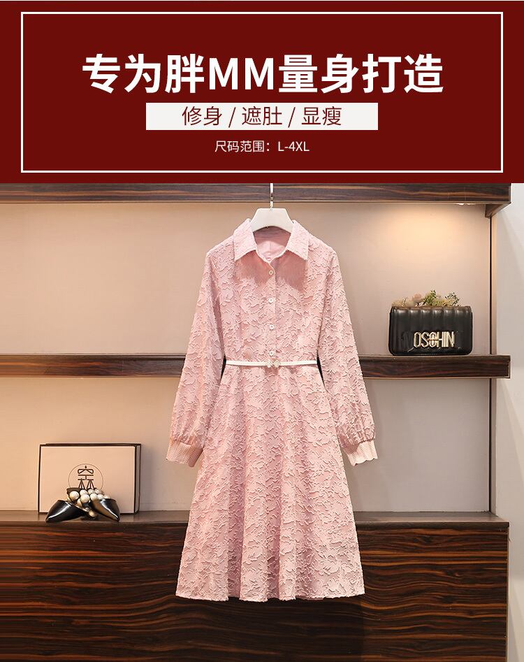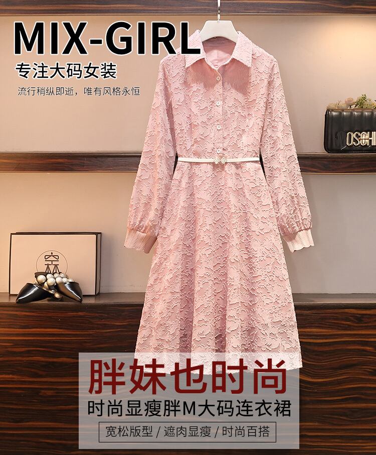 大きいサイズの婦人服 2022 トレンディな女性の秋の新しいファットシスター年齢を減らすウエストと薄いシフォンジャカードファッションドレス 大きめサイズ オータム 秋物 8884177031009499