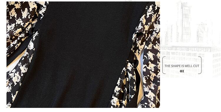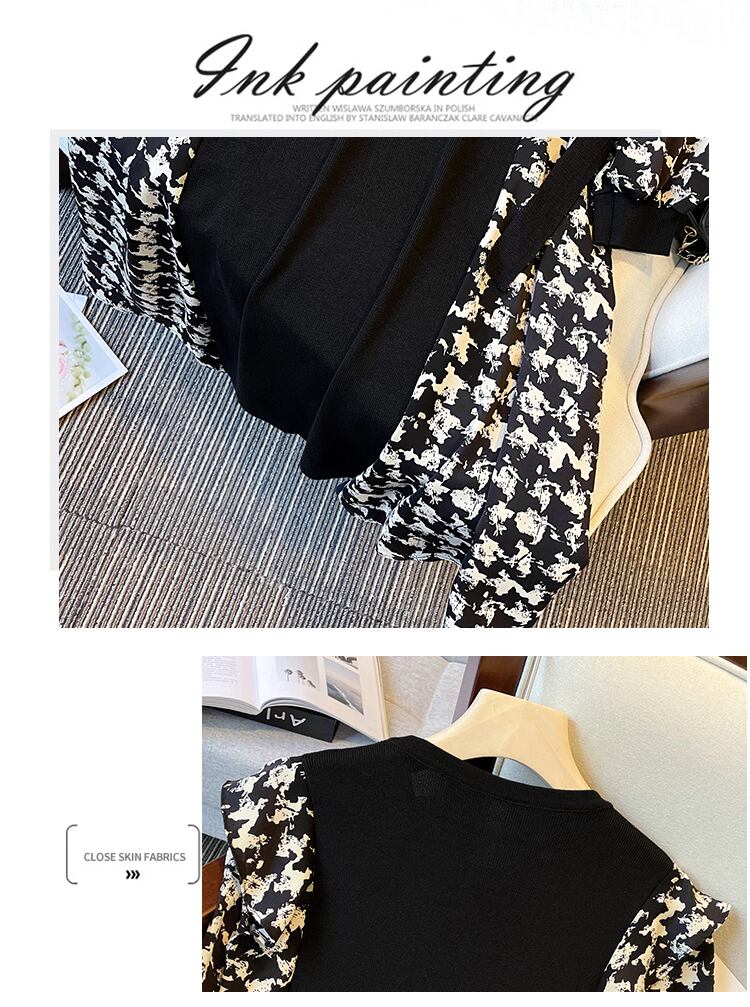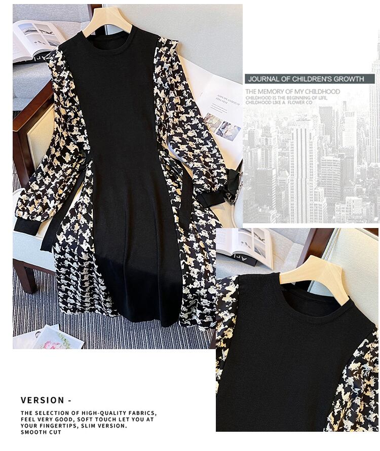 大きいサイズの婦人服 2022 ファットシスター秋の新しい千鳥格子シフォンステッチフェイクツーピースウエストとスリムなドレス 大きめサイズ オータム 秋物 8884121285331872
